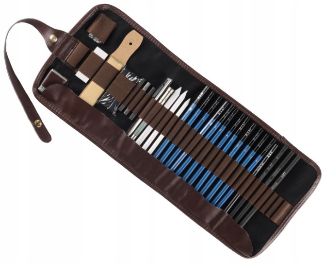 Карандаши — двенадцати различных степеней твердости от 5Н (самый твердый) до 8В (самый мягкий). Твердые карандаши предназначены в первую очередь для создания точных линий, например технических рисунков, а мягкие карандаши идеально подходят для художественных рисунков.