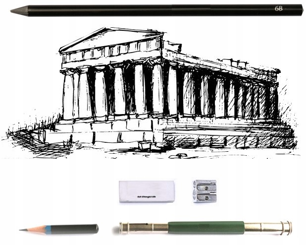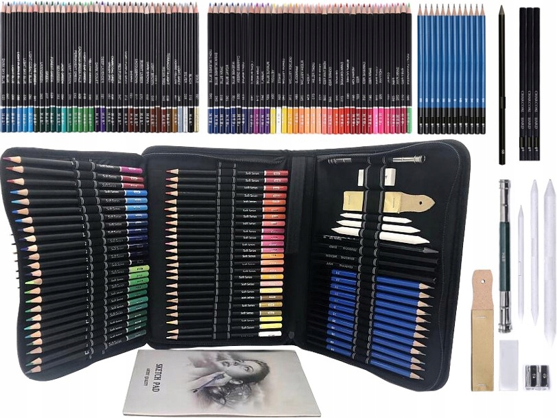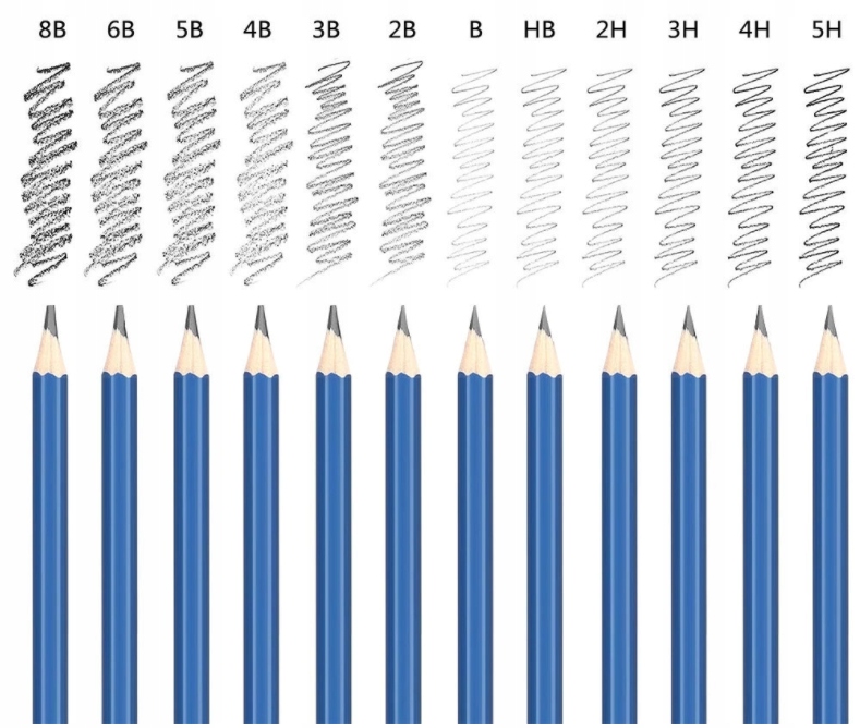 Карандаши - двенадцати различных степеней твердости от 5Н (самый твердый) до 8В (самый мягкий). Твердые карандаши предназначены в первую очередь для создания точных линий, например технических рисунков, а мягкие карандаши идеально подходят для художественных рисунков.