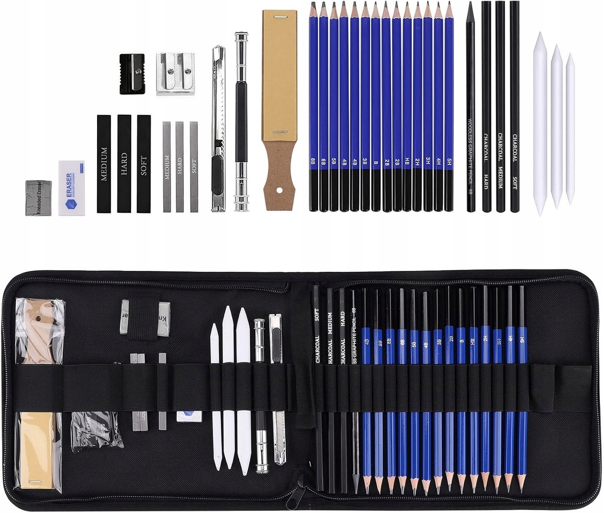 Профессиональный набор для рисования и зарисовок 32в1 с карандашами и углем