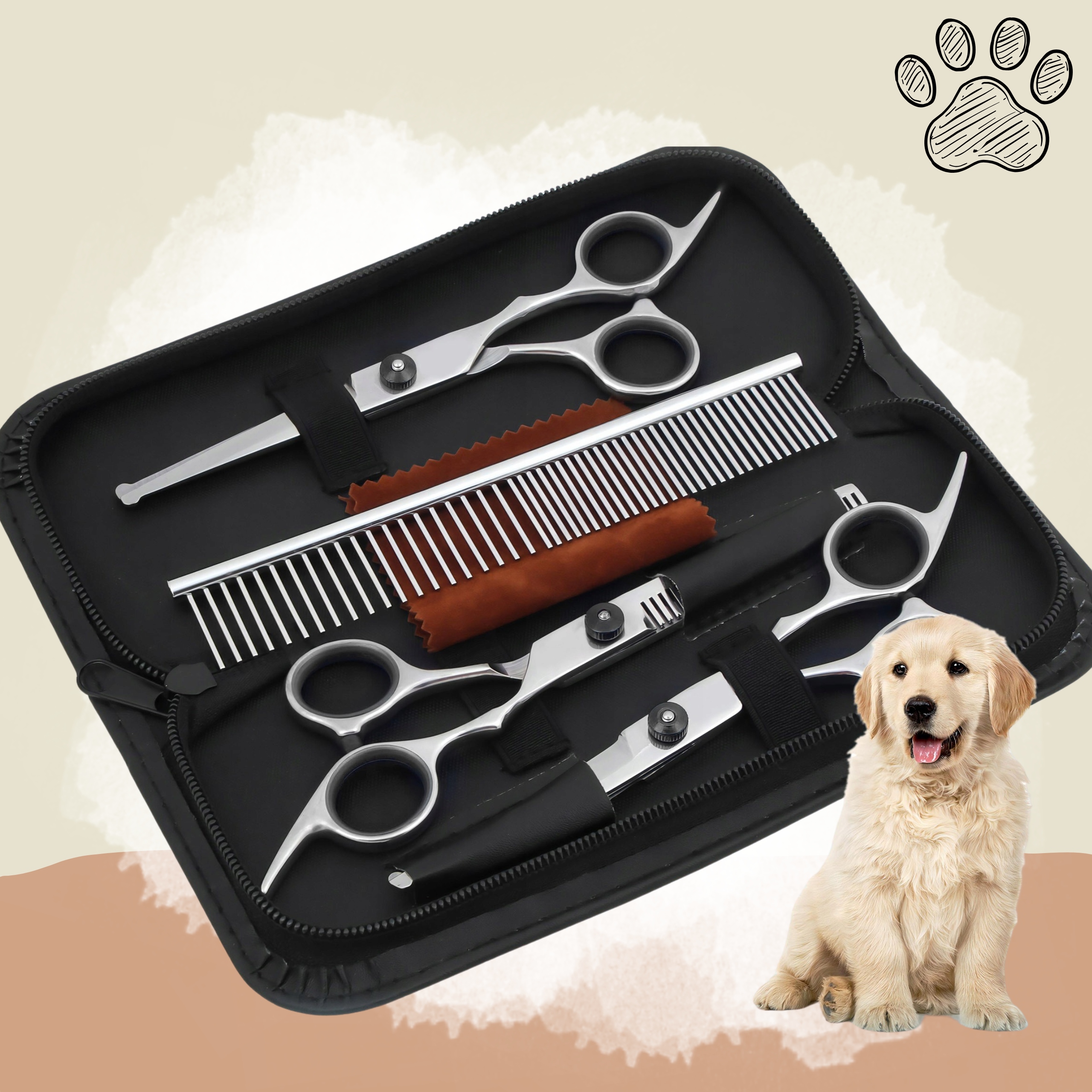 ПРОФЕССИОНАЛЬНЫЙ НАБОР ДЛЯ СТРИЖКИ СОБАК И КОШЕК, ЧЕХОЛ ДЛЯ 3 НОЖНИЦ, РАСЧЕСКА