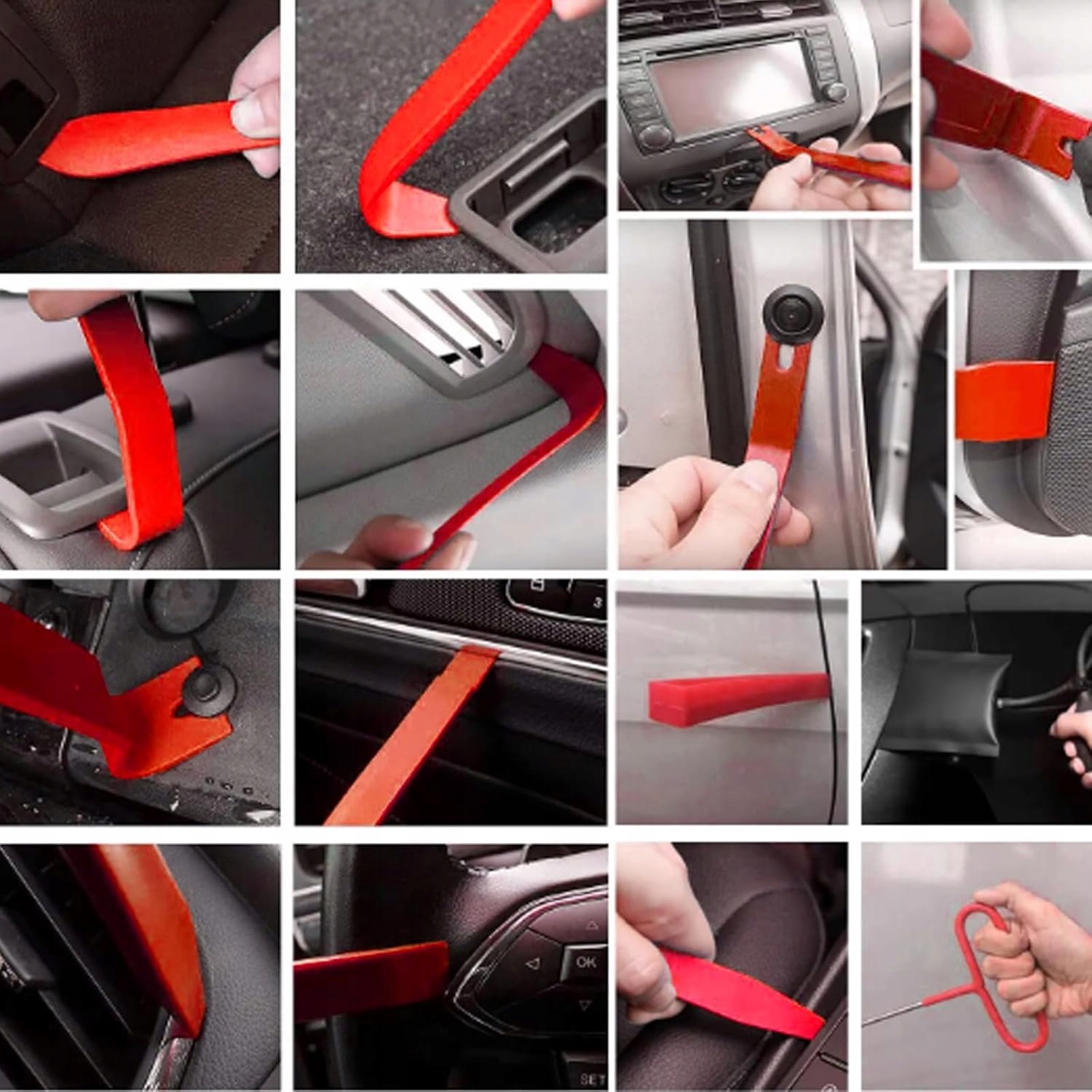 У каждого автовладельца должен быть автомобильный аварийный комплект. В крайнем случае обращаться к специалистам не обязательно. Этот незаменимый набор автомобильных инструментов идеально подходит для установки или снятия автомобильных аудиосистем, дверных ручек, вентиляционных отверстий, облицовки окон, зажимов, приборной панели и других модификаций внутри и снаружи вашего автомобиля.