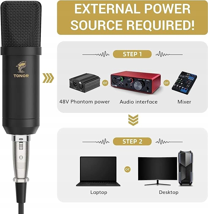 - Требуется внешний источник питания: Примечание. Конденсаторные микрофоны содержат активную электронику, которой требуется внешний источник питания. Для правильной работы подключите TC20 к фантомному питанию 48 В, аудиоинтерфейсу, микшеру или предусилителю.
