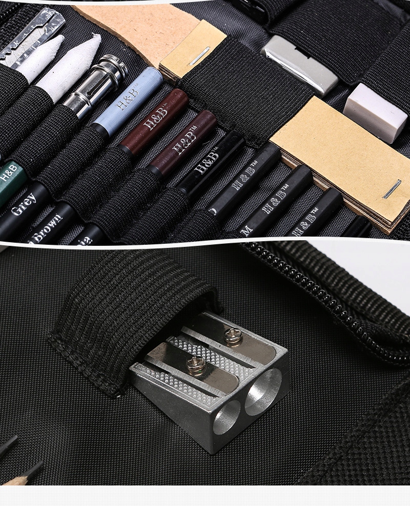 Набор карандашей и аксессуаров для профессионального рисования + жесткий и прочный пенал H&B