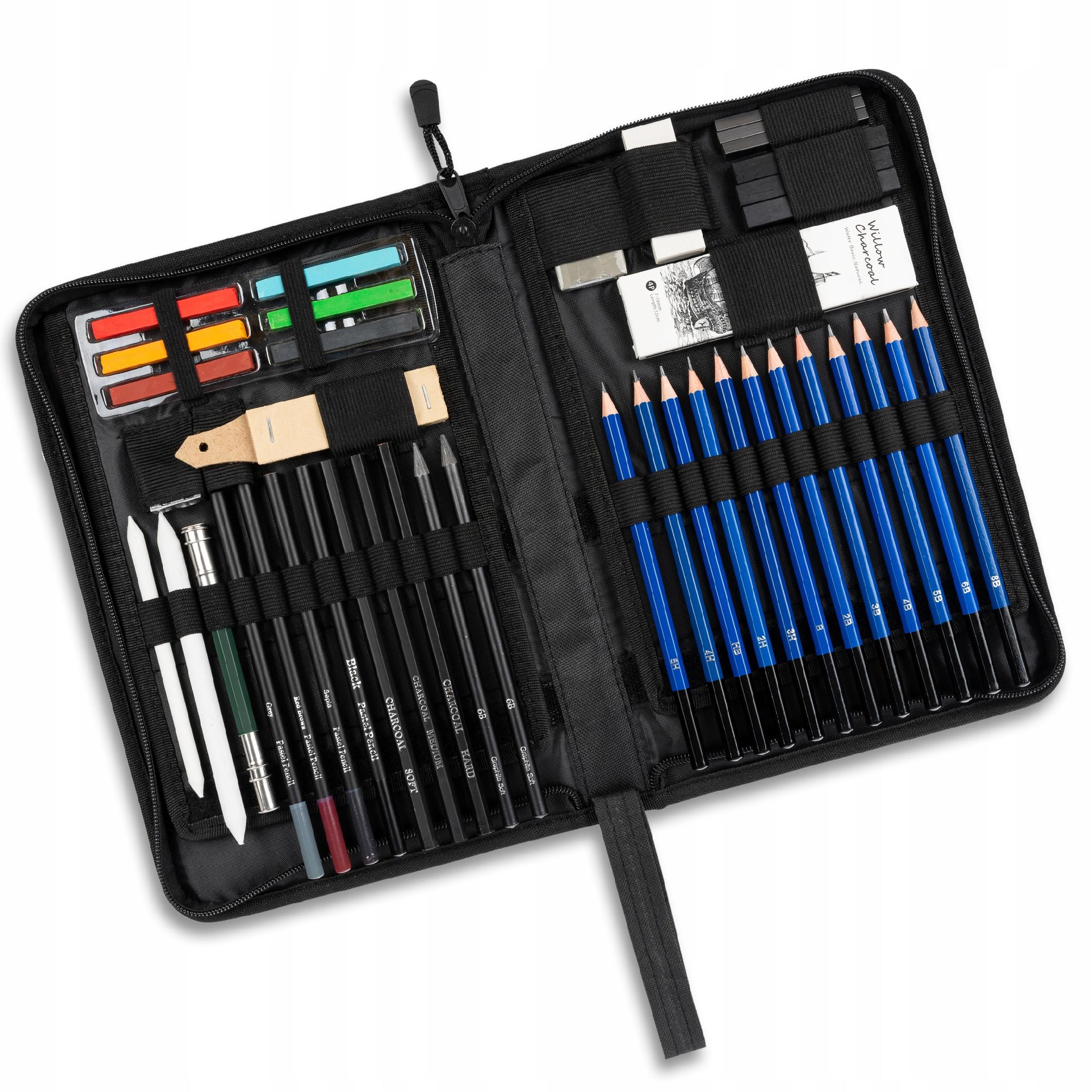 ✔️ Полезные аксессуары, такие как ластик, точилка, нож и стильный чехол позволят вам комфортно рисовать где угодно.