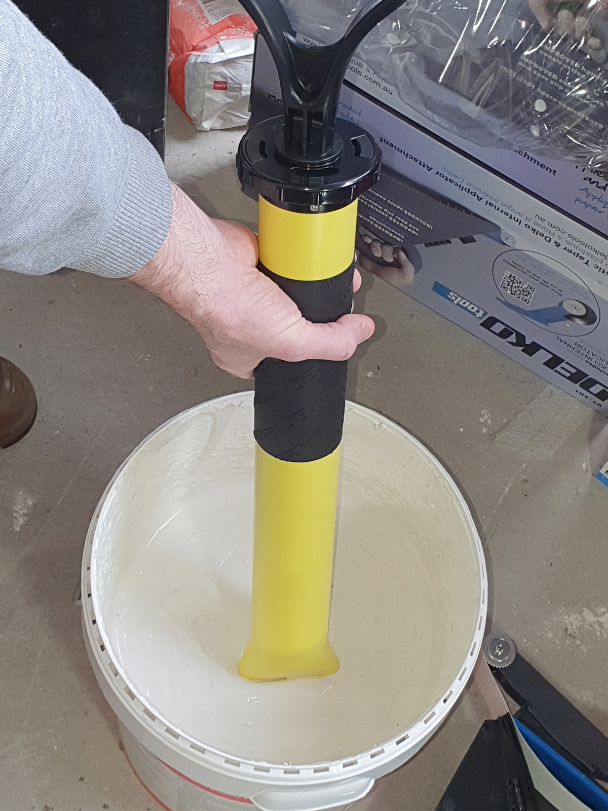 Достаточно поднять все ведро, чтобы заполнить шов составом. Просто всасывайте шпаклевку одним движением и заполняйте ею устройство Delkotools. Емкость 1,1 литра позволит заполнить весь фуганок всего одним насосом. Теперь заполнение будет быстрым, точным и чистым!