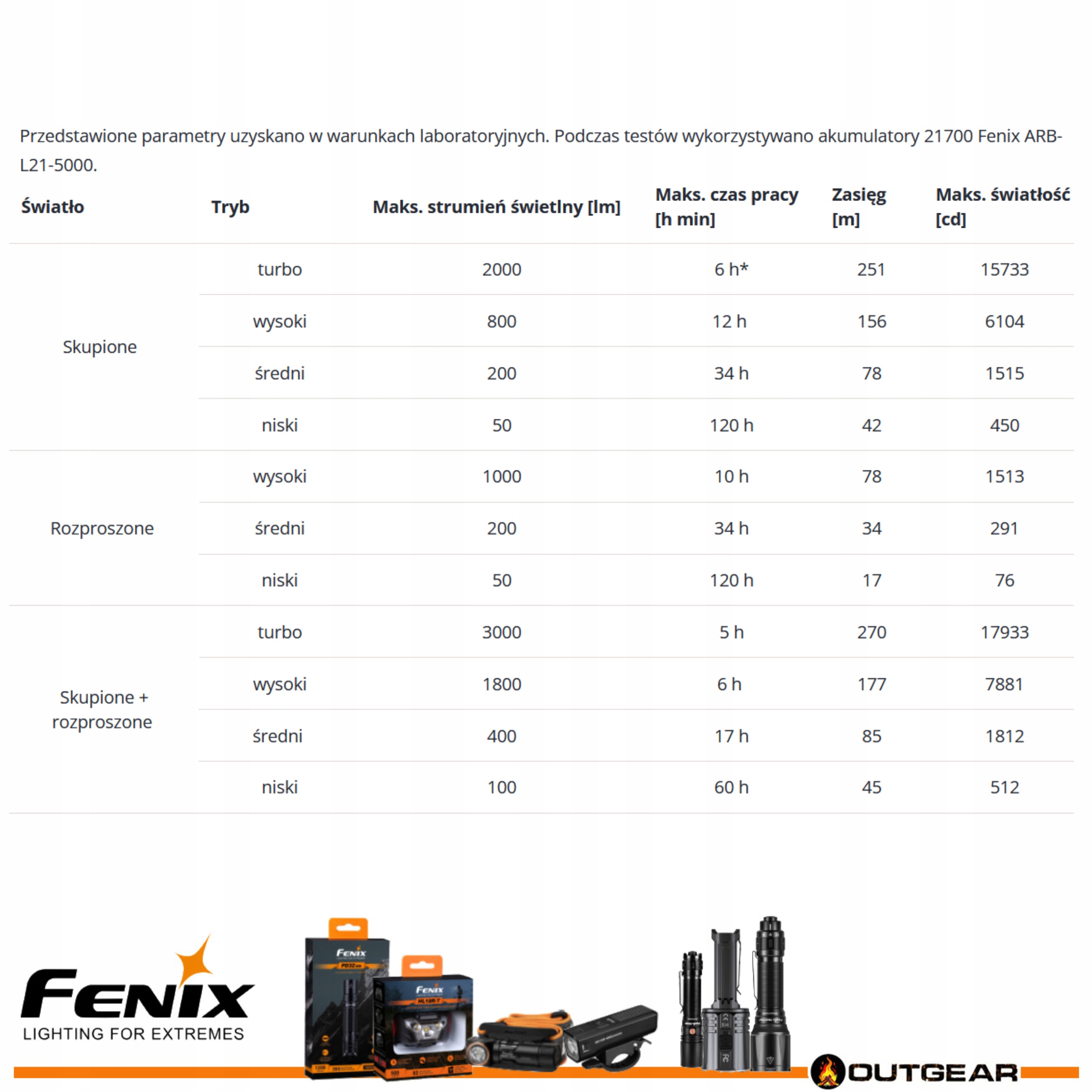 Основным источником фонарика является большой светодиод Cree Xhp50, излучающий максимальный световой поток 2000 года. 270 метров. Свет с белым цветом лучше освещены отдаленными местами, у нас также есть гораздо большая яркость. Свет основного диода отражается в гладком фар, создавая скважинный поток, полезный во время исследования, тестирования отрывков и восхищения отдаленными объектами. Чтобы минимизировать потери света, фонарик использует закаленную ультра-ясенную быстрое быстрое покрытие с анти-рефлексивным покрытием с высокой передачей