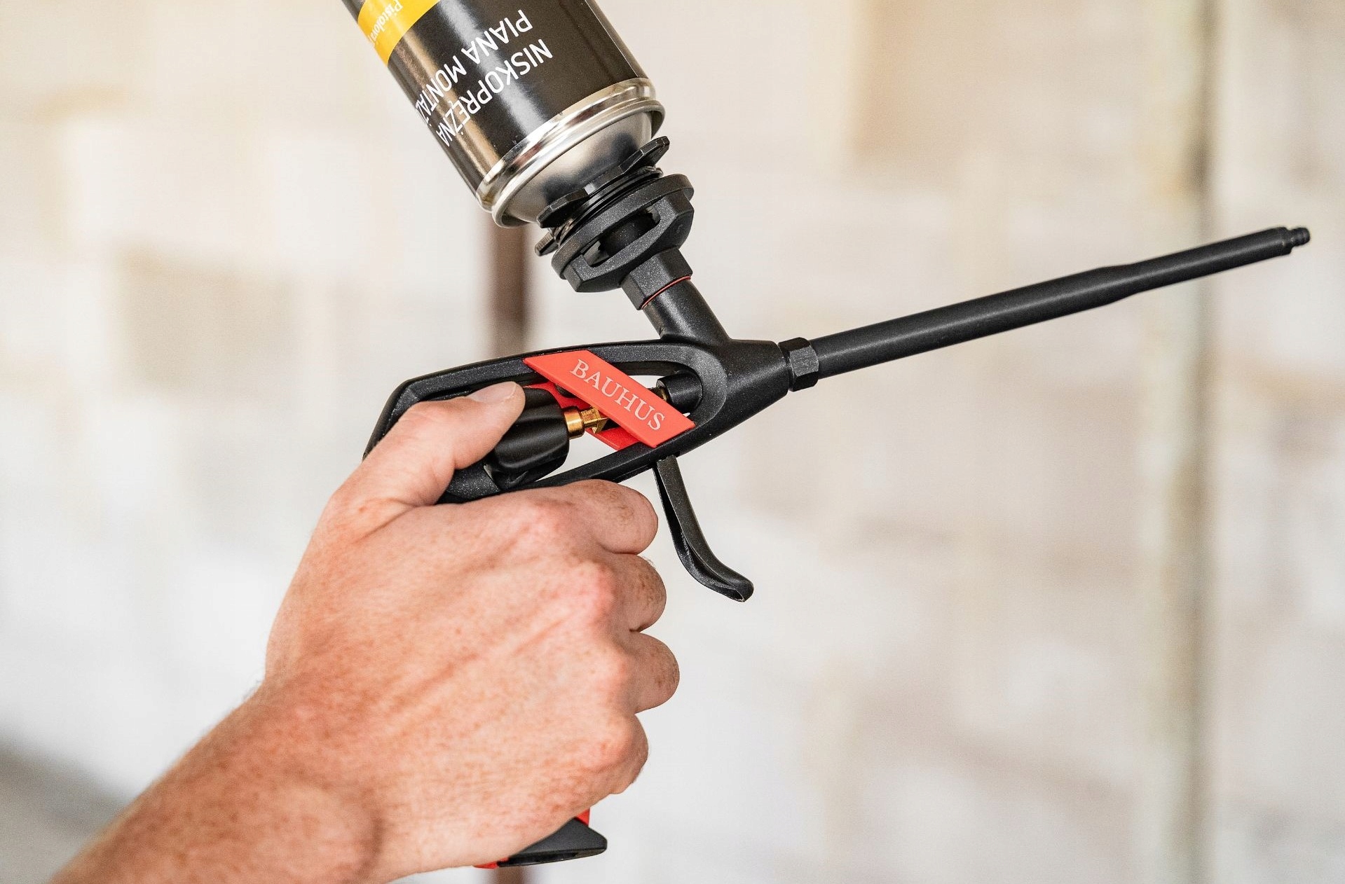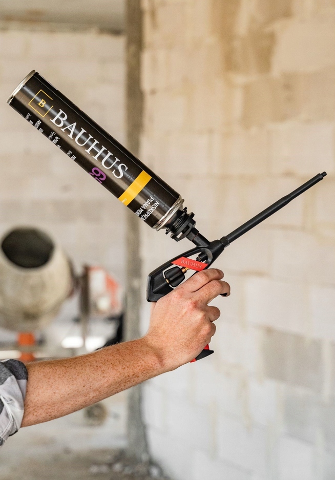 После окончания работы с пенопластом рекомендуется воспользоваться очистителем Bauhus. Затем очистите гнездо пистолета и всю грязь мягкой тканью.