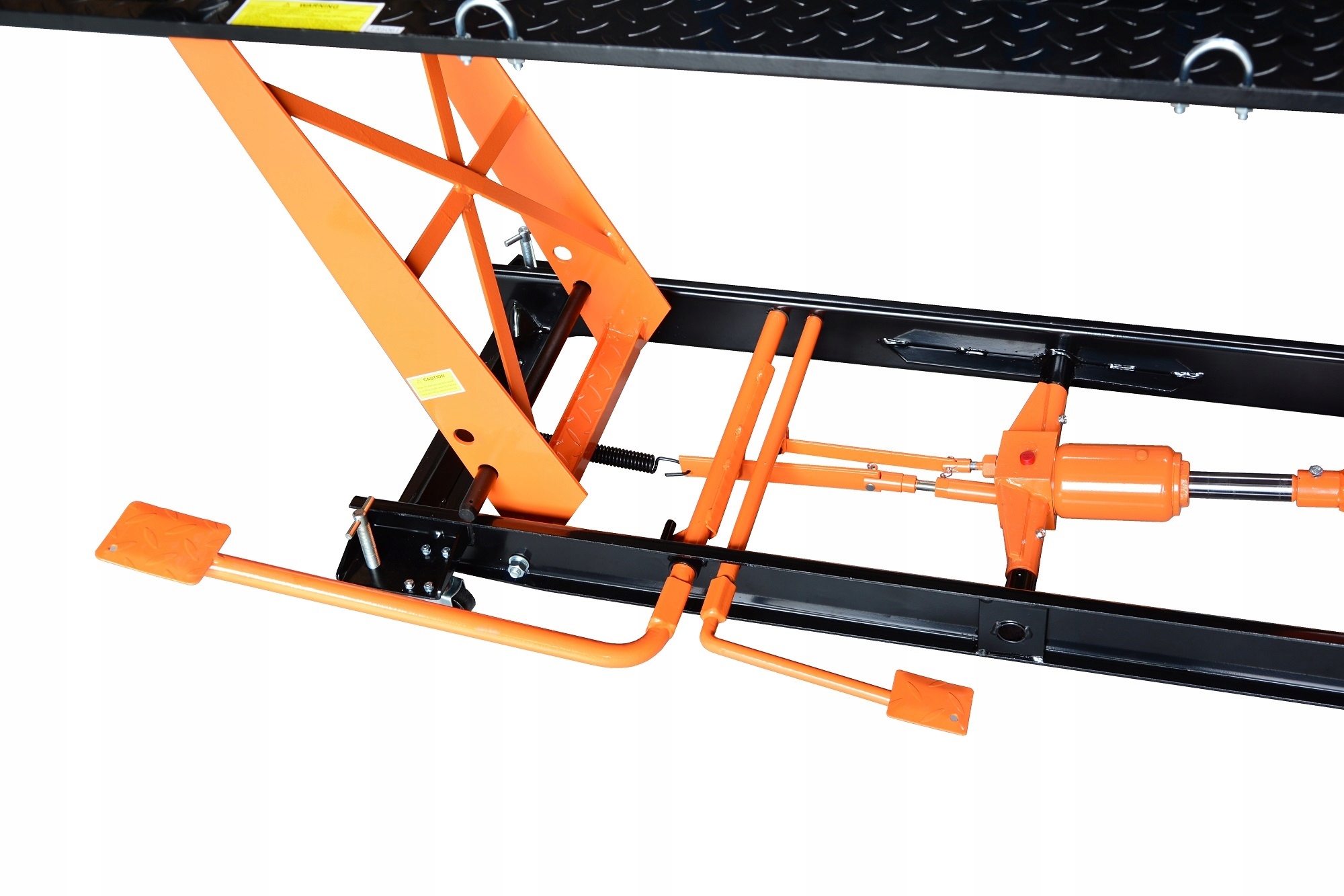 Платформа поднимается нажатием ножного рычага и плавно опускается нажатием второй педали.