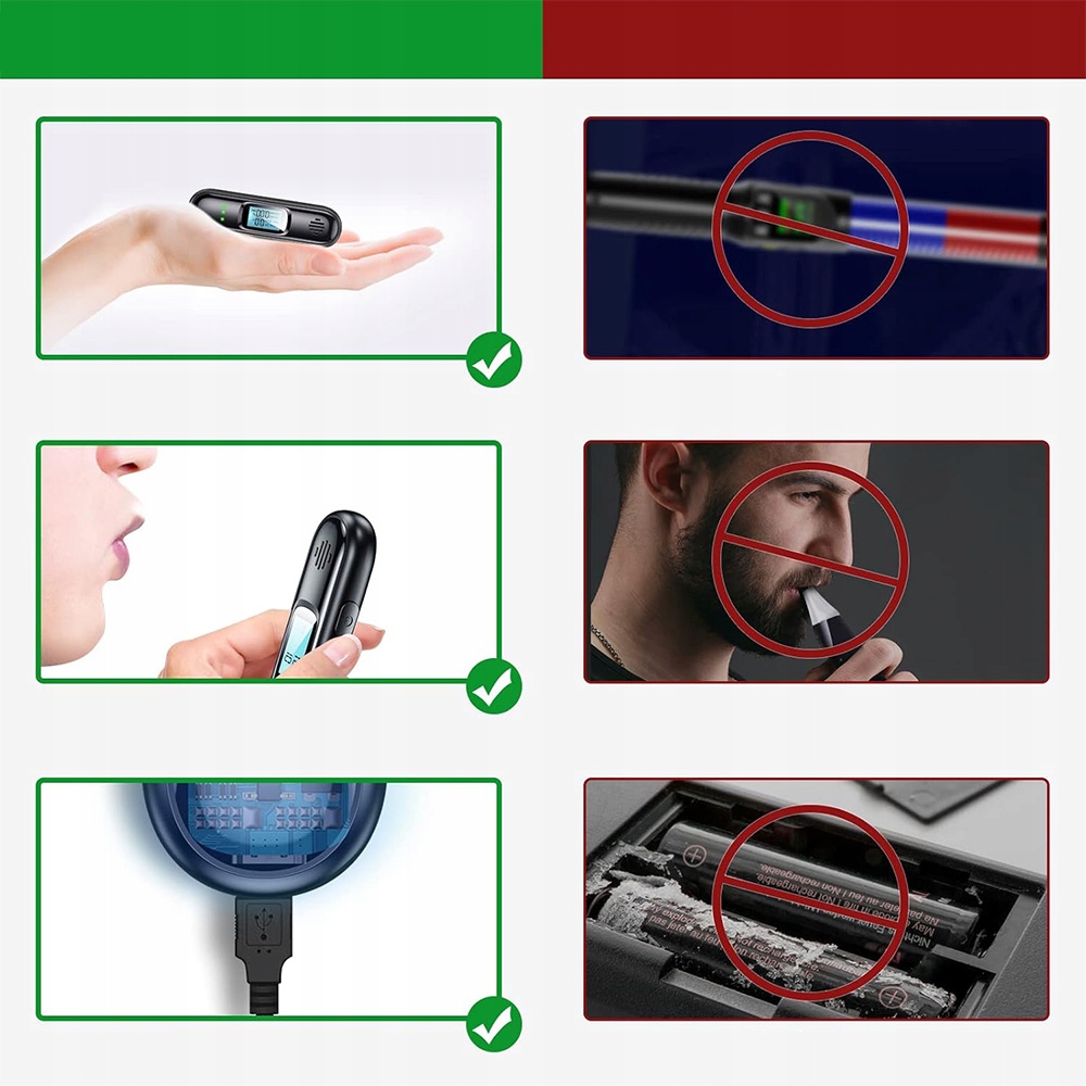 ✅- Простота в использовании, есть 1 кнопка, нажмите и удерживайте кнопку питания, чтобы включить, подождите 10 секунд и подуйте в течение 5 секунд, после звукового сигнала отобразится результат теста («индикатор выключения мигнет дважды, дважды прозвучит звуковой сигнал, чтобы выключиться»).