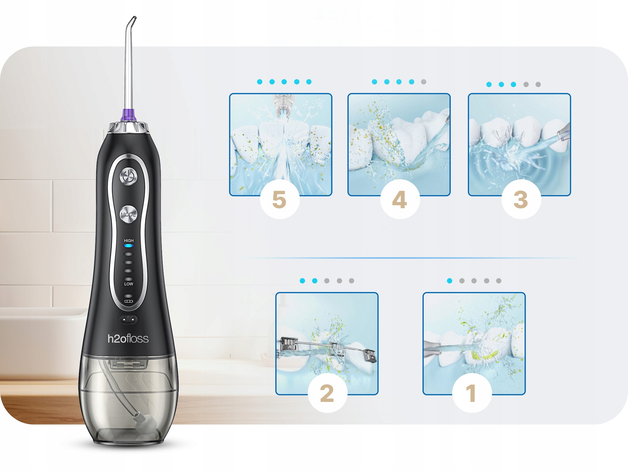 Благодаря этим различным насадкам ирригатор становится универсальным инструментом для ухода за полостью рта, позволяющим индивидуально подходить к вашим потребностям в гигиене полости рта. каждому человеку.