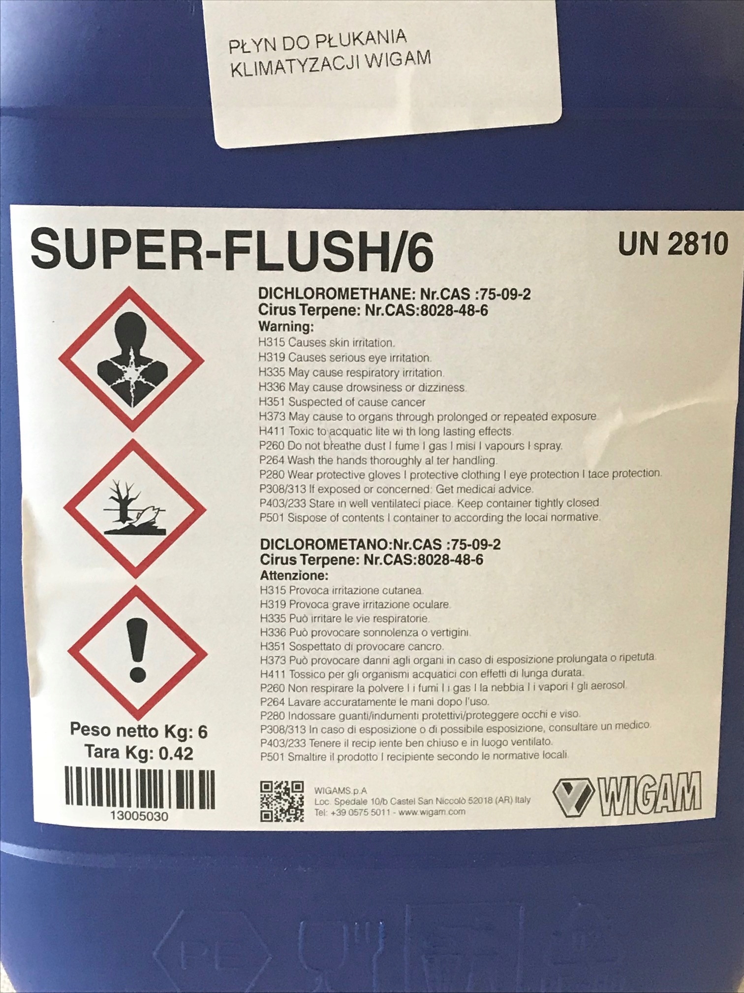 Также доступен ополаскиватель Wigam (негорючий) в упаковках по 6 и 20 кг (препарат в комплект не входит, приобретается отдельно)