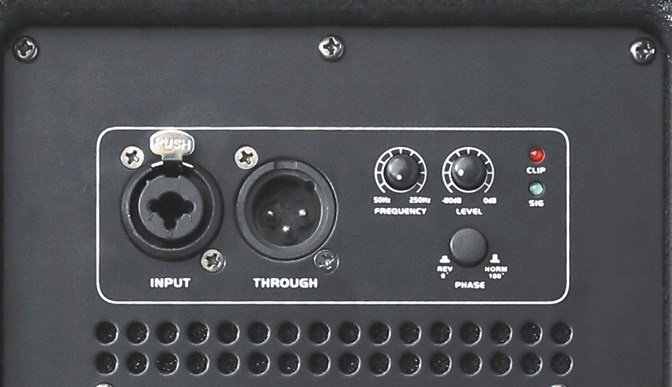 Профессиональный 15 "Активный сабвуфер. Общество, изготовленное из 15-мм пластины MDF со структурным лаком. Фазовый переключатель, распределение частоты деления 50-250 Гц.