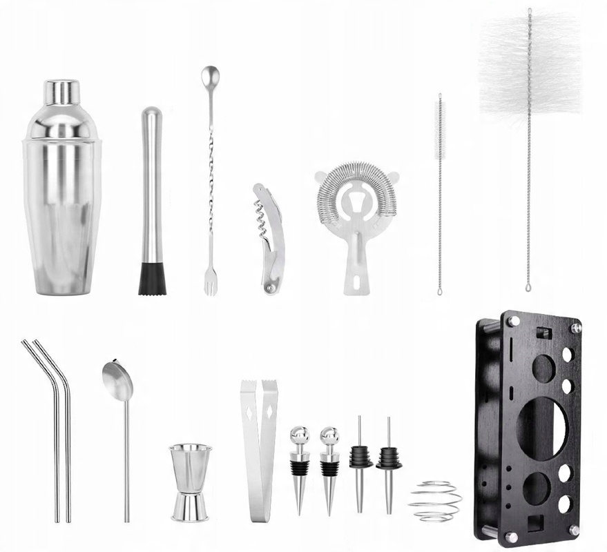 Исключительно декоративный набор, идеально подходящий для домашнего бара или для вечеров с друзьями. Стойка для хранения имеет специальные слоты для каждой части. Больше никакого хаоса в кухонных ящиках и шкафах.