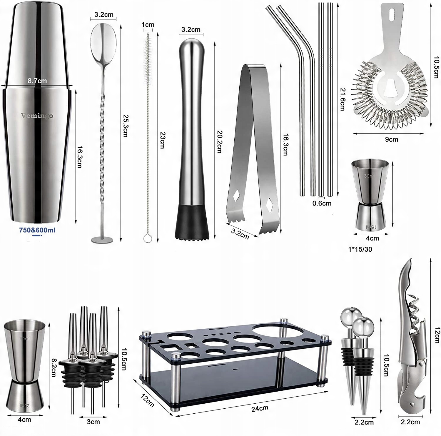 Профессиональный барменский набор шейкер Vemingo 20 шт., нержавеющая сталь
