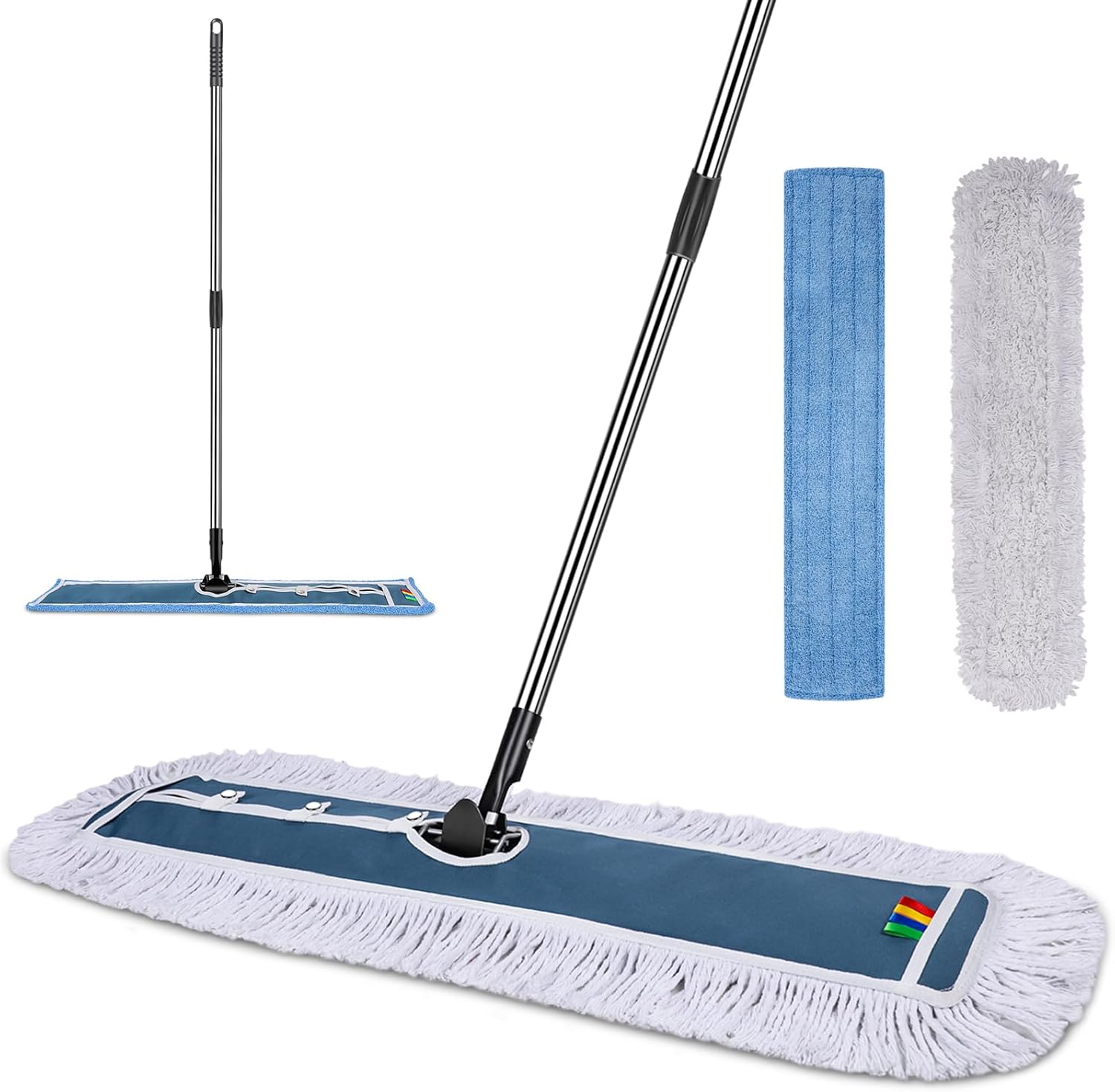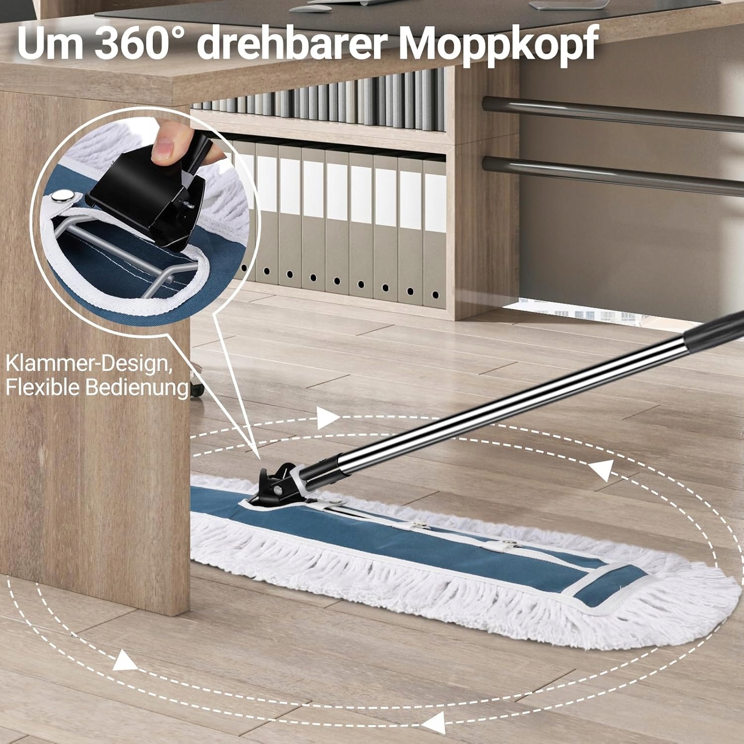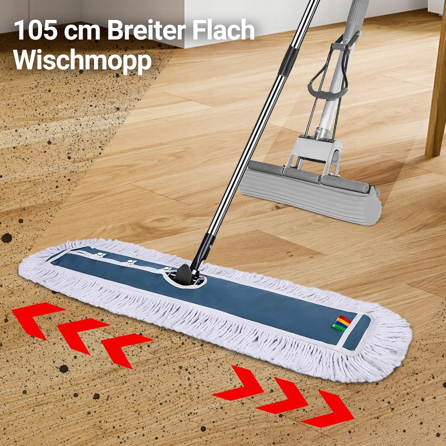 ⭐ Mastertop Floor Mop, большая, плоская шваблина шириной 105 см, хлопок и микрофибрь, с 2 прокладками для швабры, профессиональная плоская шваблина с ручкой из нержавеющей стали ⭐ h1>