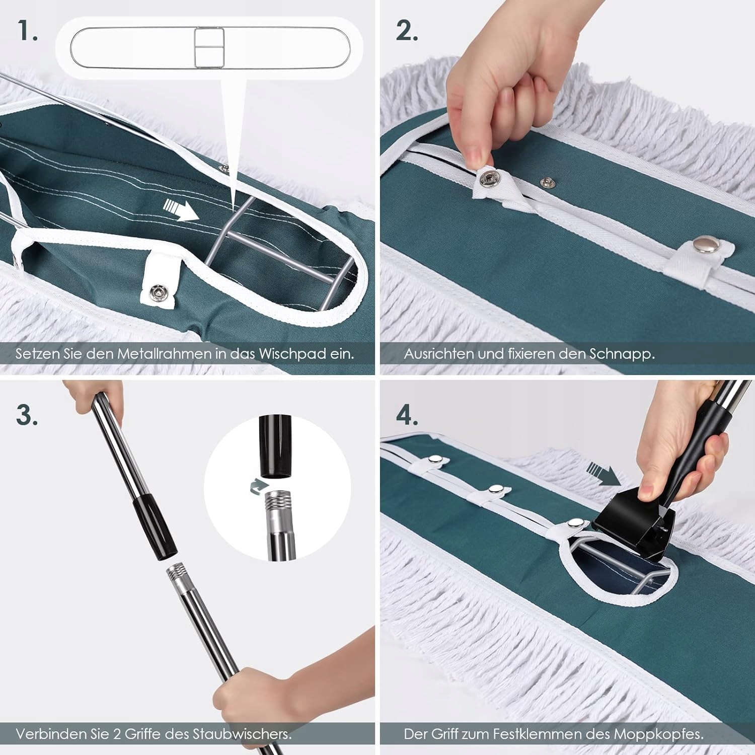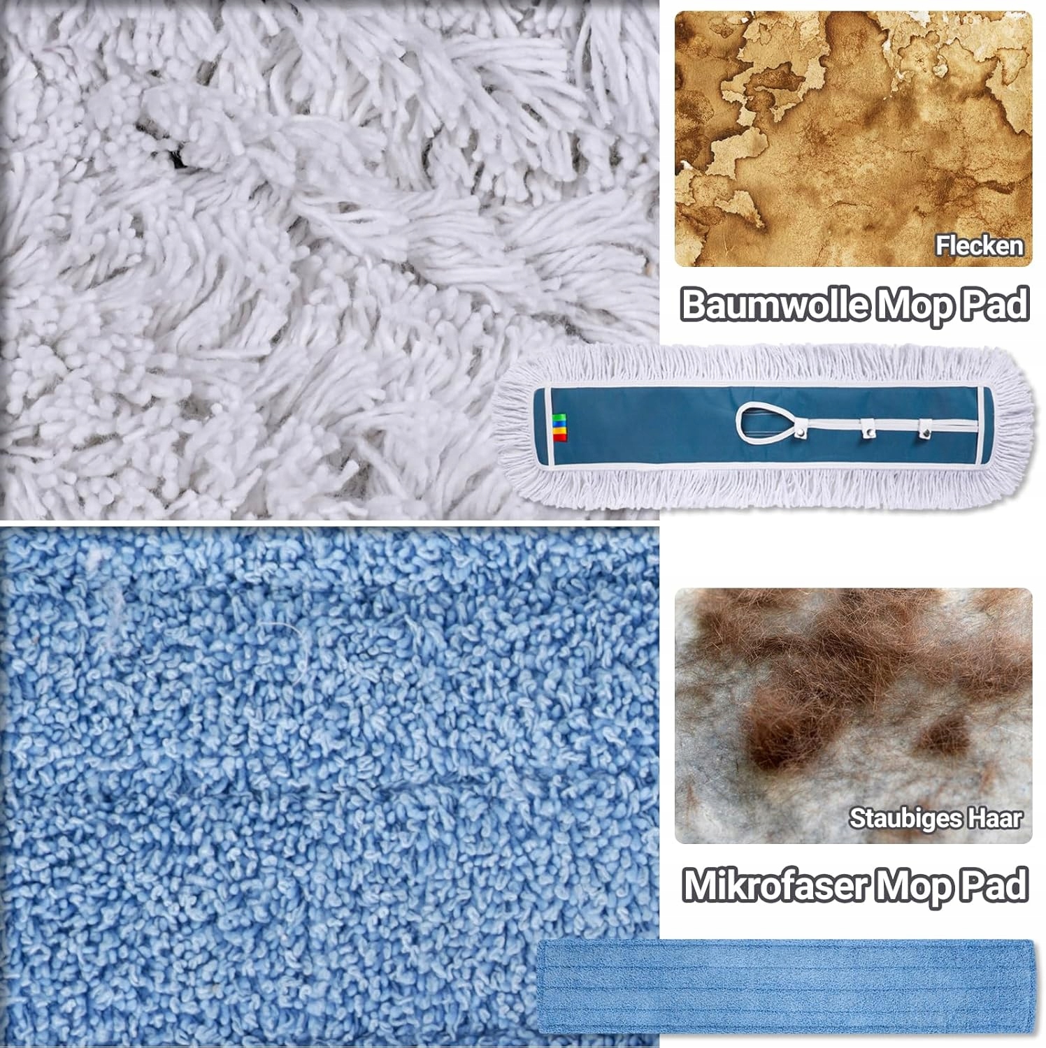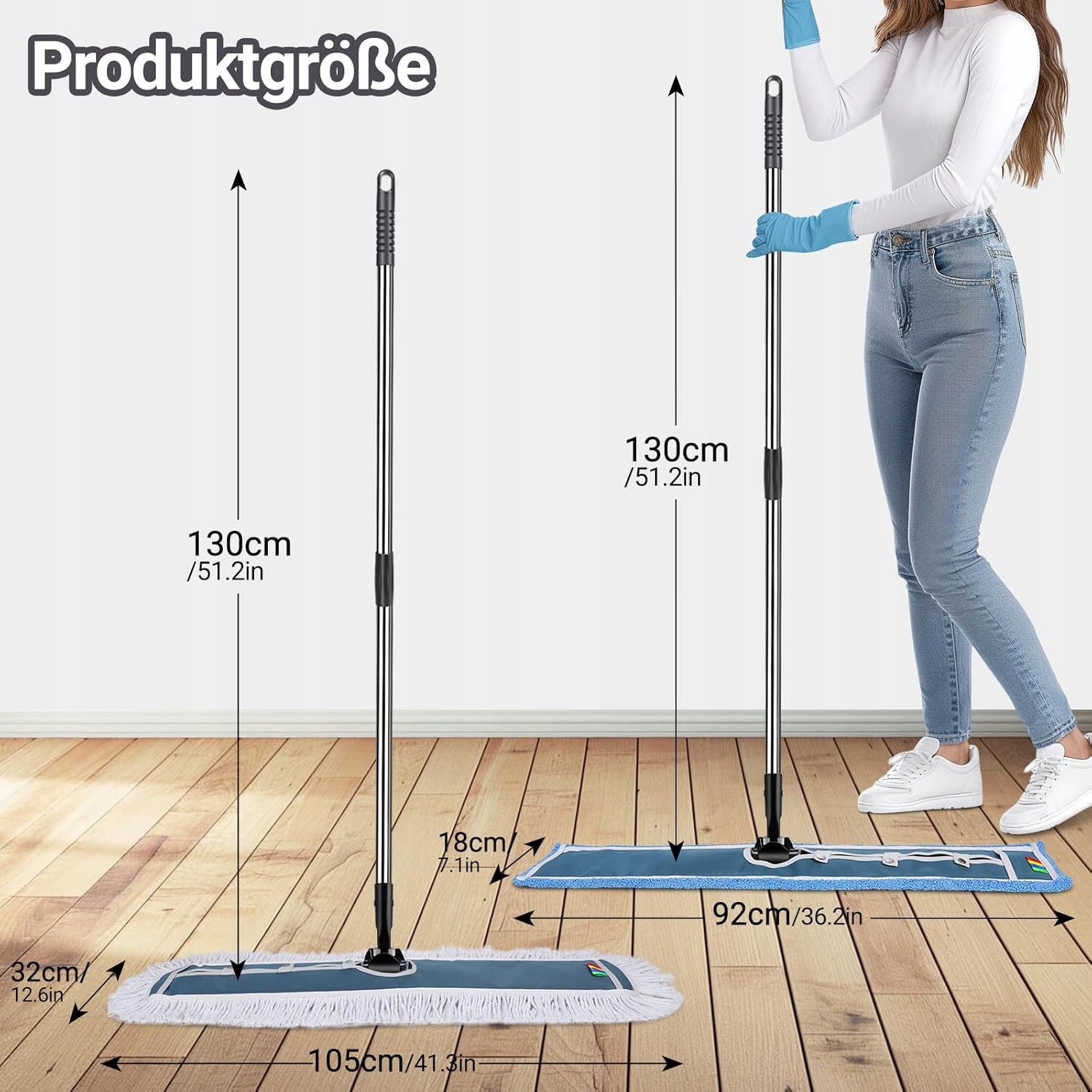 ✅ Очень большая головка швабры - хлопчатобумажная площадка 105 x 32 см и 92 x 18 см микроволокна позволяет быстро и эффективно чистить каждую поверхность, экономя время и энергию.