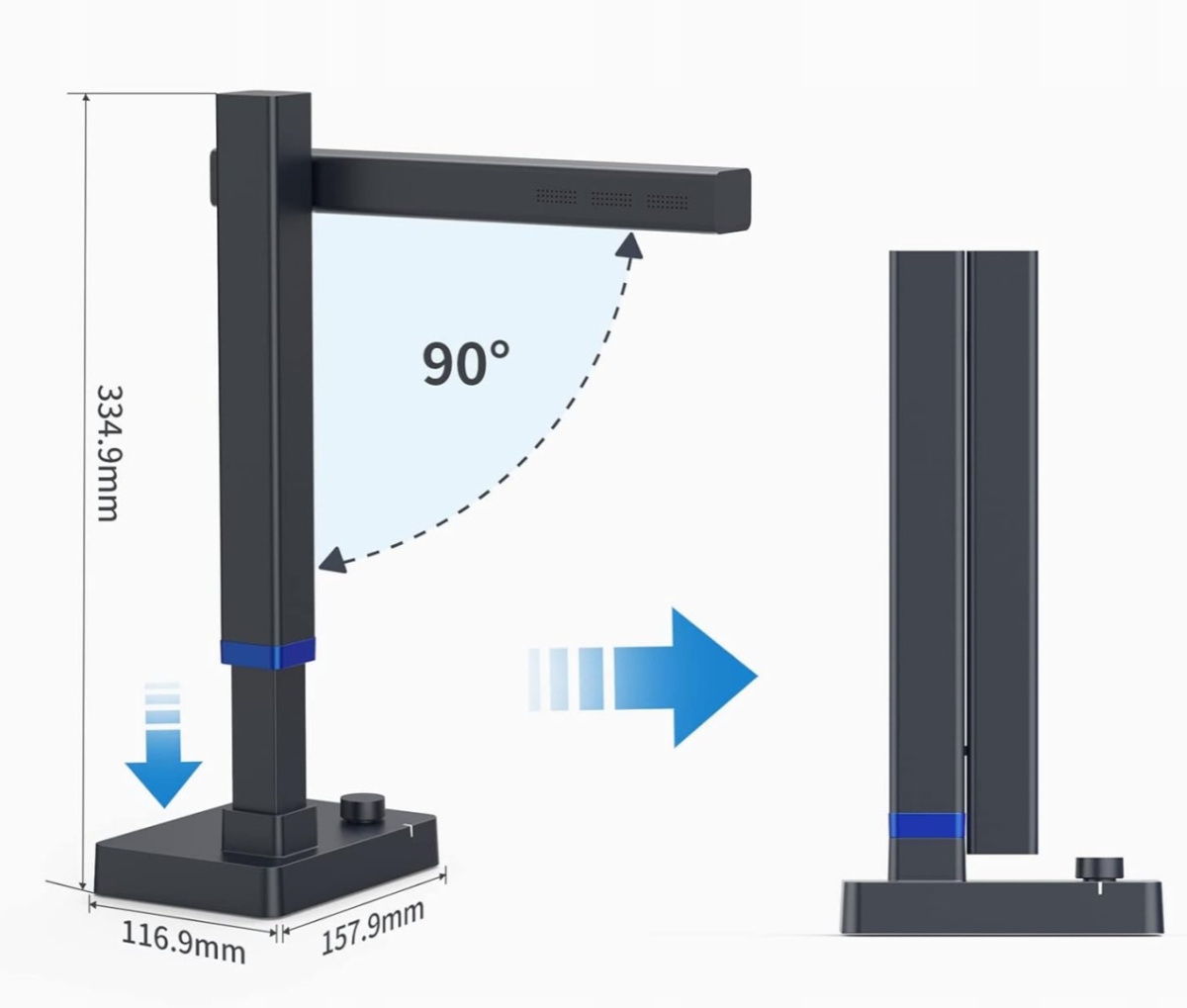 Профессиональный сканер для книг и документов Czur Shine 800 A3 pro, поддерживающий форматы до А3, сложенный под углом 90°, с выдвижной балкой, портативный