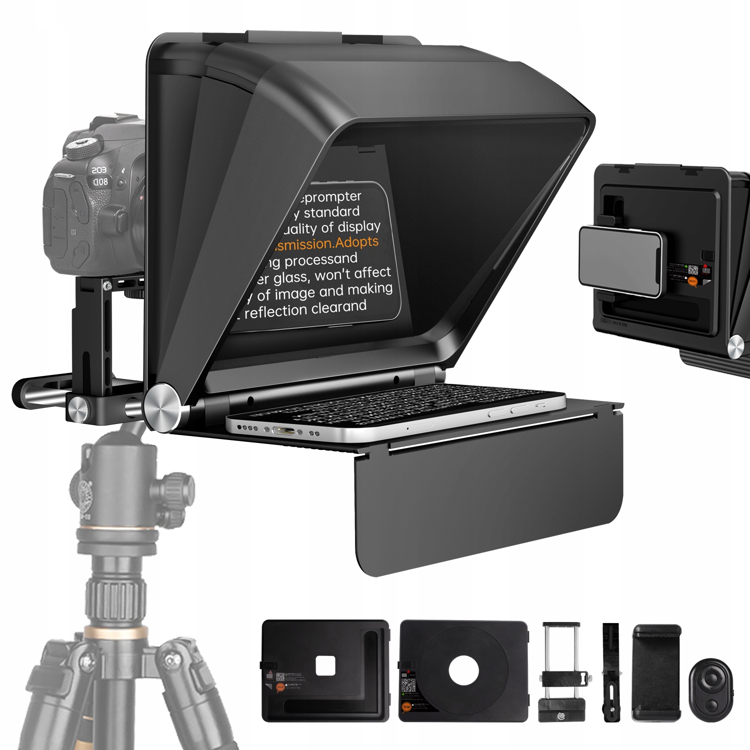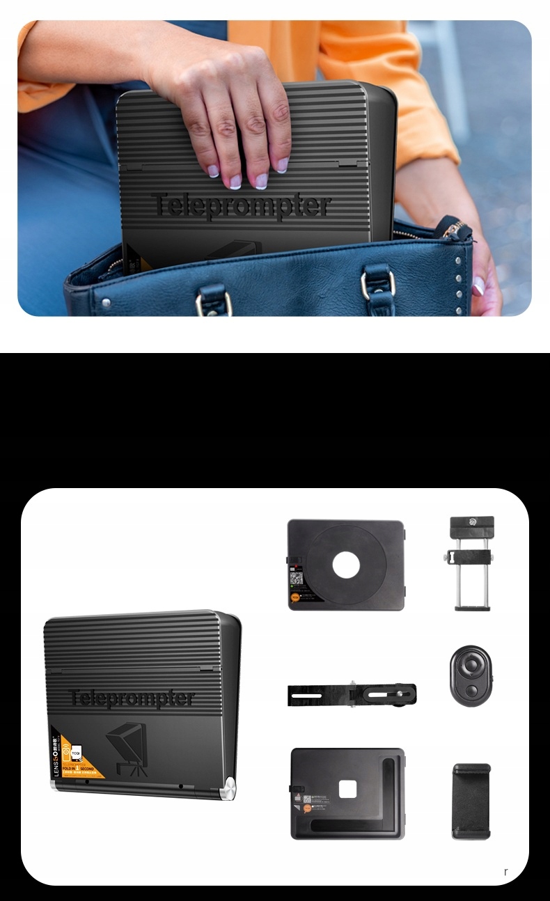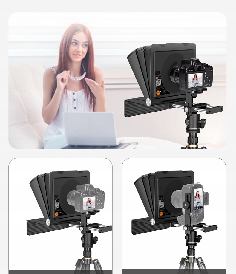 ✨ Teleprompter позволяет записывать профессиональные видеоматериалы, используя как смартфон/телефон, так и фотоаппарат или видеокамеру. Благодаря набору держателей, входящих в комплект, можно сразу приступить к записи - без приобретения дополнительных адаптеров.