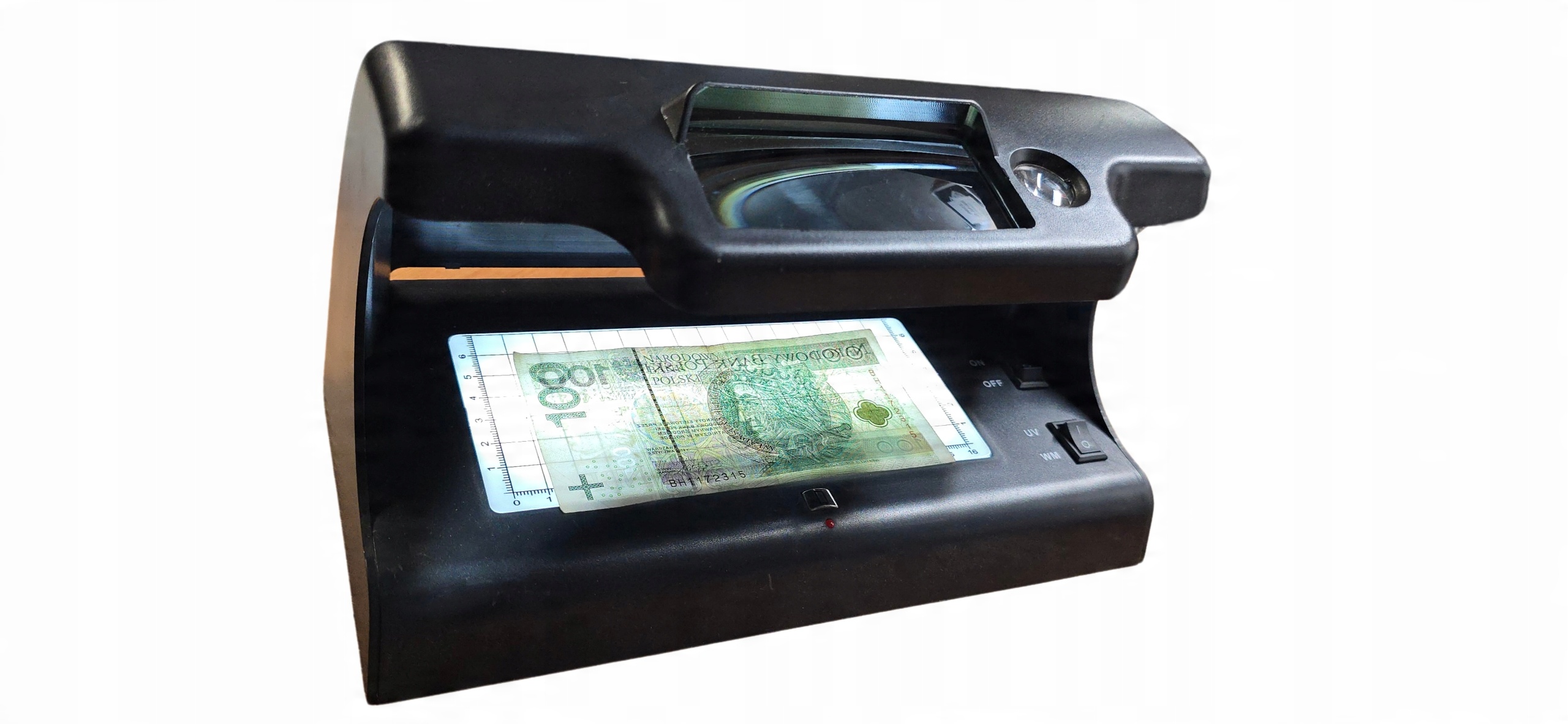 магнитная головка проверяет наличие магнитных нитей или магнетизм краски на банкноте. встроенное -в увеличенном стекле