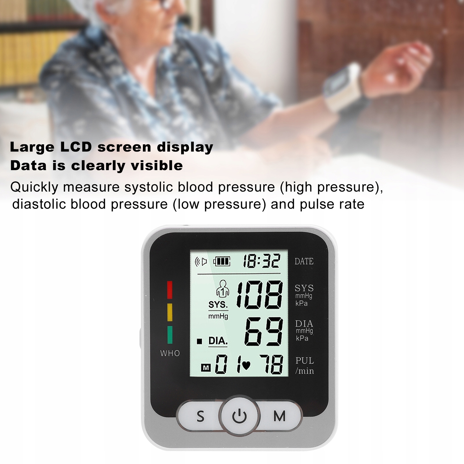 Особенность:1. Большой ЖК-экран, данные четко видны, прост в просмотре и эксплуатации, продуманный дизайн.