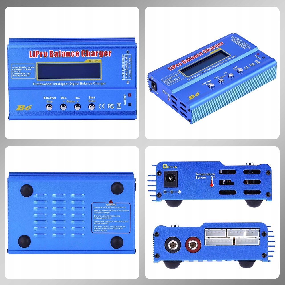 IMAX B6AC поддерживает все батареи, доступные на рынке, например. Ni-Cd, Ni-Mh, Li-Po, Li-Io, Li-Fe, Pb. Имеет встроенный балансир 2-6s для Li-xx. Благодаря зарядному устройству есть возможность заряжать и разряжать наши аккумуляторы.