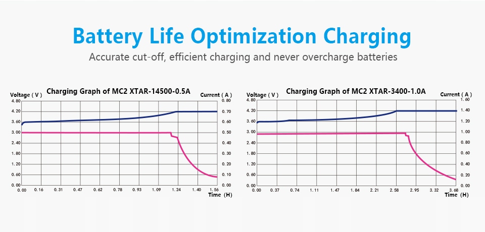 Зарядные устройства других производителей могут значительно снизить увеличить температуру заряженных элементов во время зарядки. Чрезмерный нагрев элементов может привести к их более быстрому износу. При разработке зарядного устройства MC2 Plus компания Xtar пошла еще дальше.