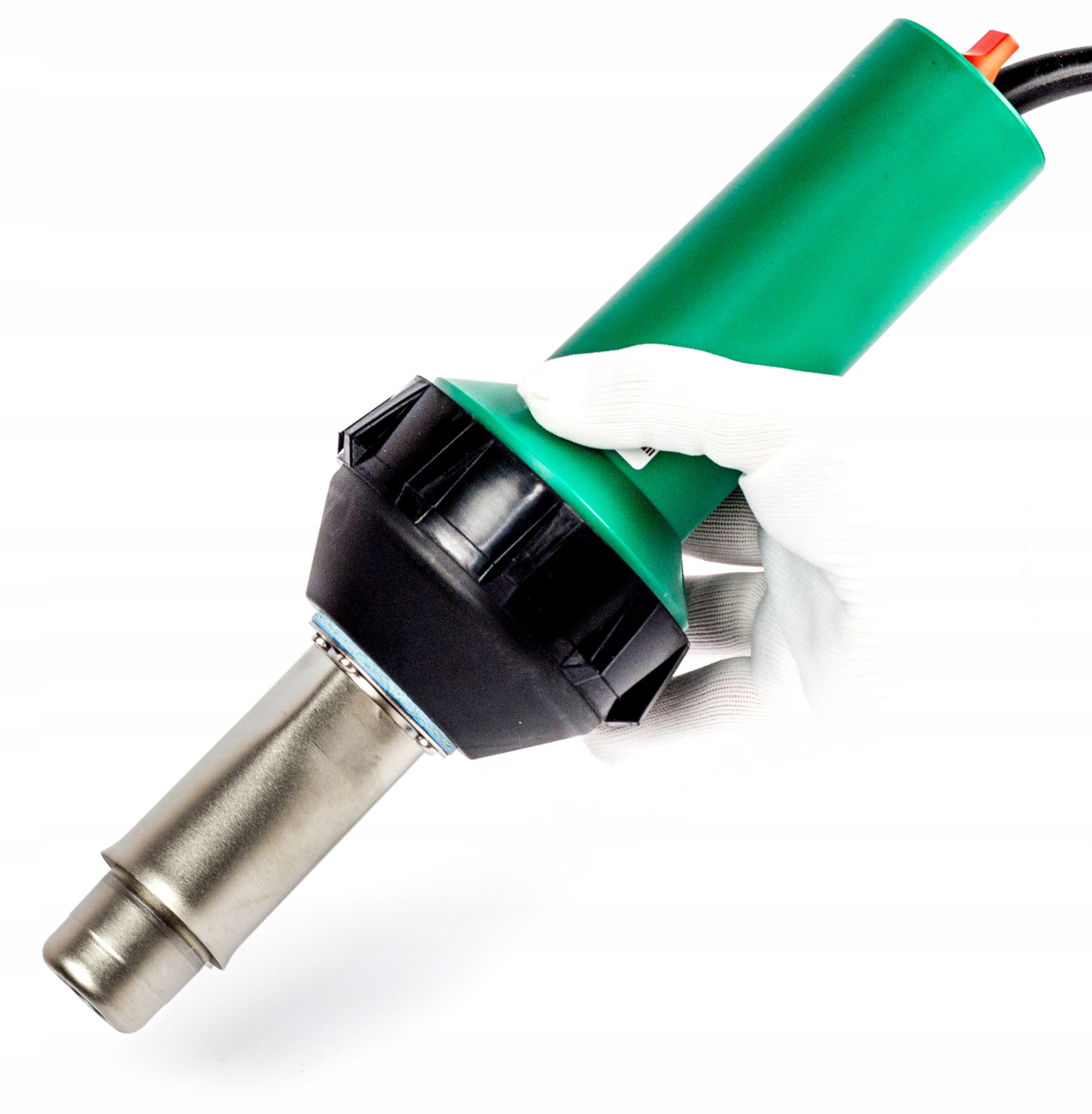 Сварочный аппарат весит всего 1,3 кг (с кабелем) и имеет тонкую рукоятку диаметром 56 мм, что существенно улучшает эргономику. Пользователь может работать длительное время, не перегружая руки и запястья. Идеальное решение для кровельщиков, укладчиков ковров и операторов, работающих на высоте.