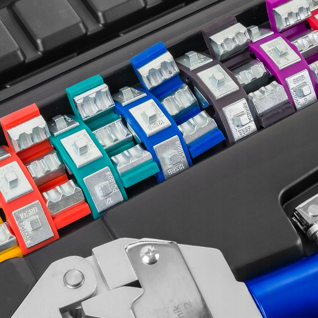 - Зажимные матрицы: Набор матриц для шлангов различных размеров. , что позволяет универсально Применение