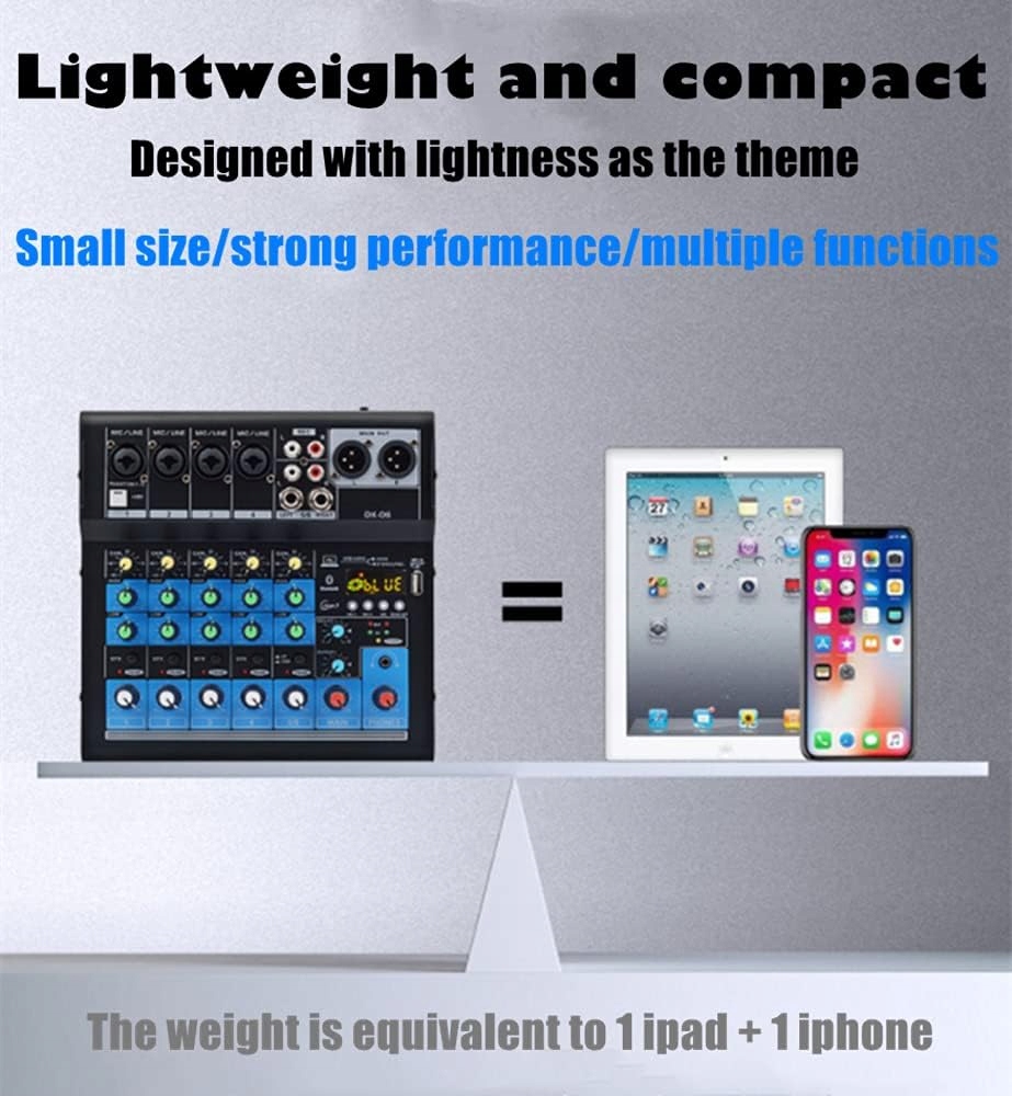 Profesjonalny mini mikser audio 6 kanałów kontroler DJ bluetooth USB