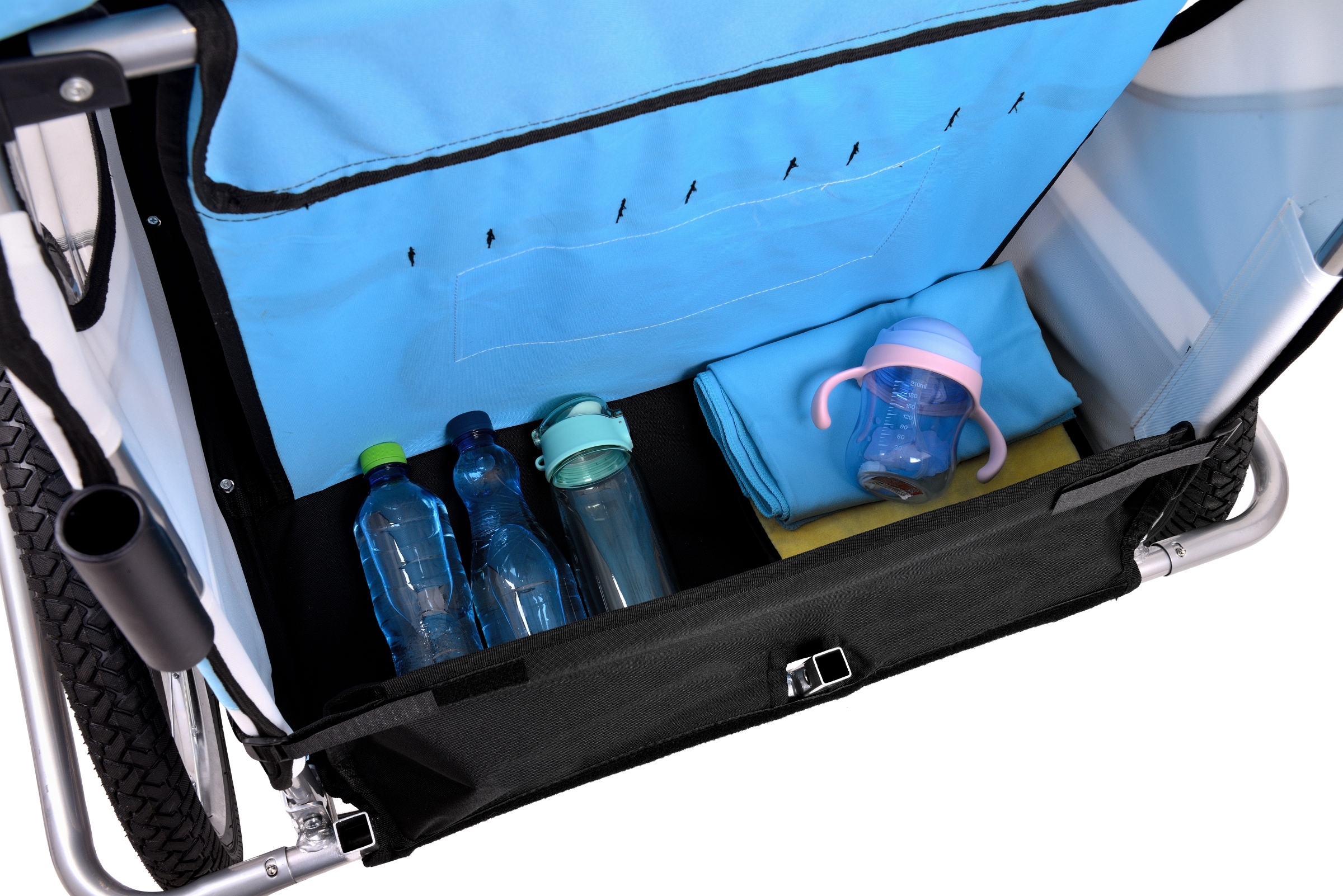 В задней части прицепа расположен просторный вещевой отсек с высокой стенкой. В нем достаточно вместительно хранить игрушки, одежду, провизию и многое другое.
