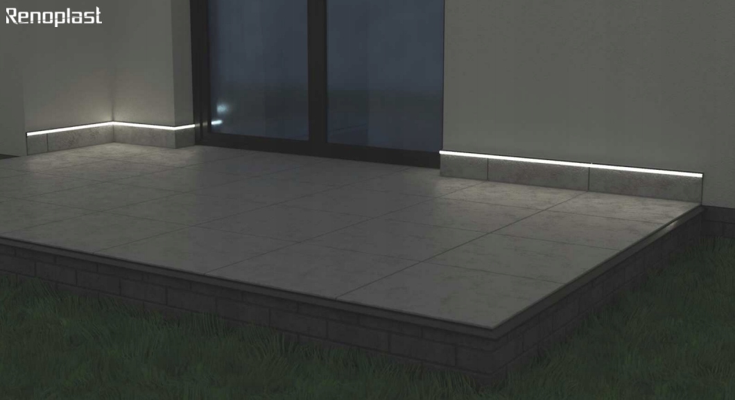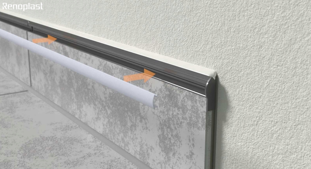 Светодиодный цокольный профиль Ренопласт предназначен для традиционных клееных и смоляных полов типа «каменный ковер».