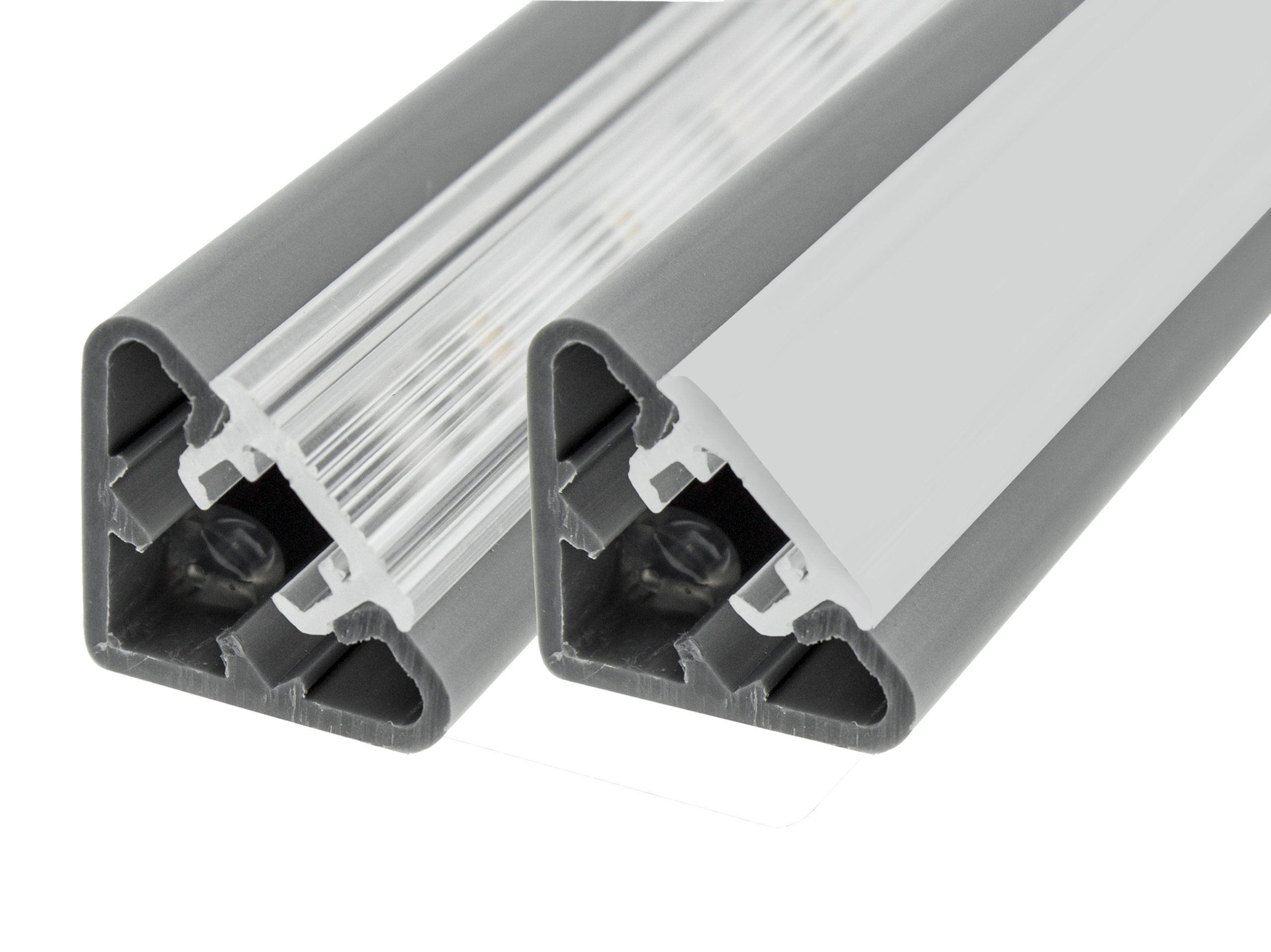 Профиль имеет на выбор крышку молочного или прозрачного и две боковые заглушки.