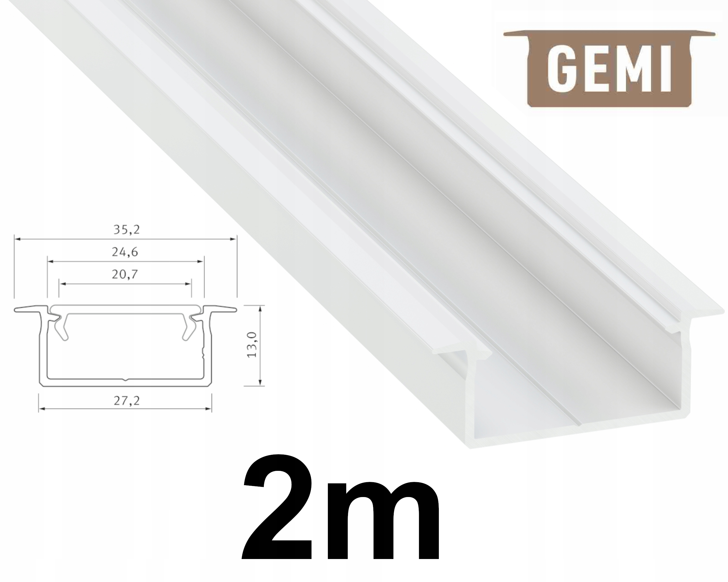 Профиль для светодиодных лент для 2 светодиодных светодиодов Gemi, белый утопленный 2M