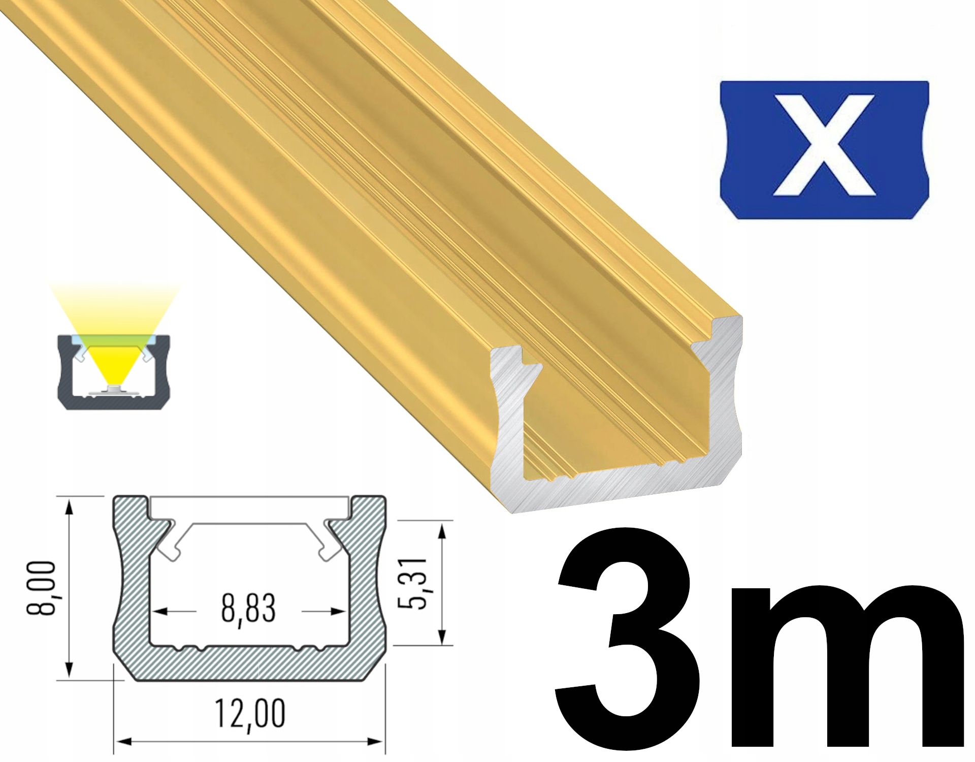 Профиль для светодиодов Светодиодный алюминий низкий узкий 12 мм типа x 3M Золотая лака или утопленная h1> ☝ Klosz - Доступно на другой Auckja h2> ☝.