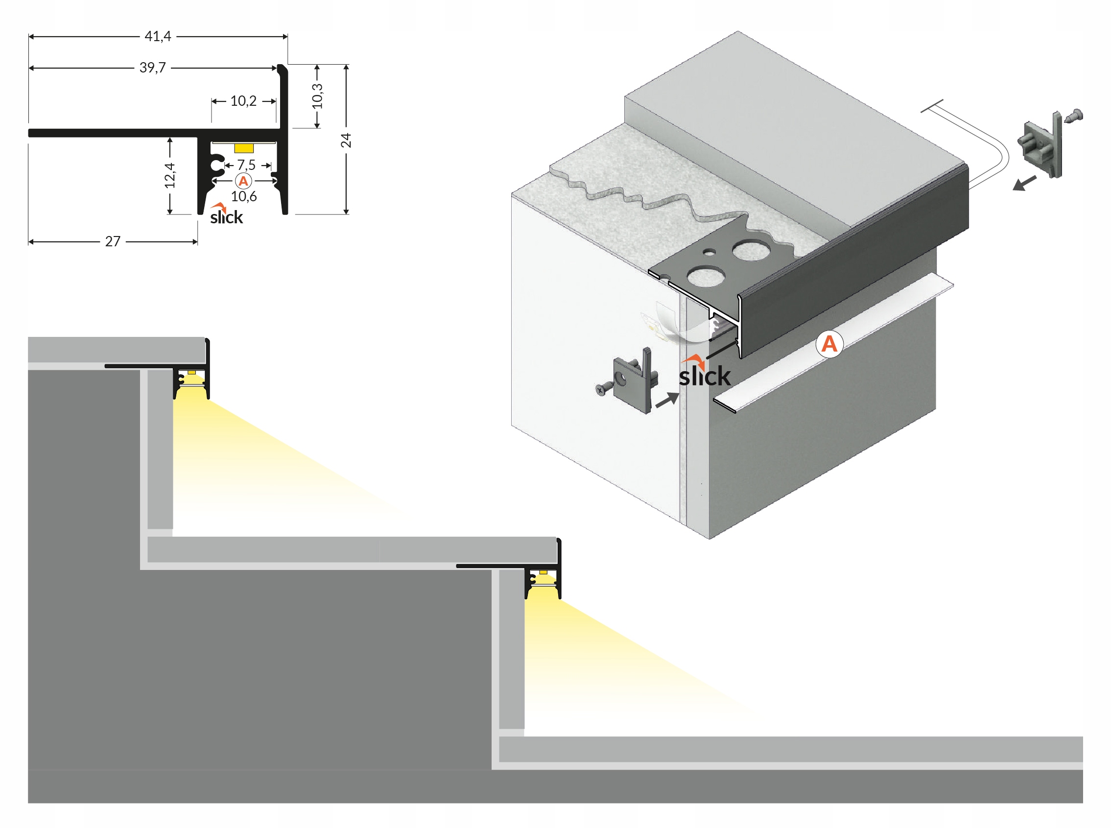 Светодиодный профиль лестницы для Up-Tile10 1M Top Mete