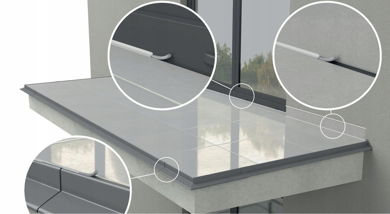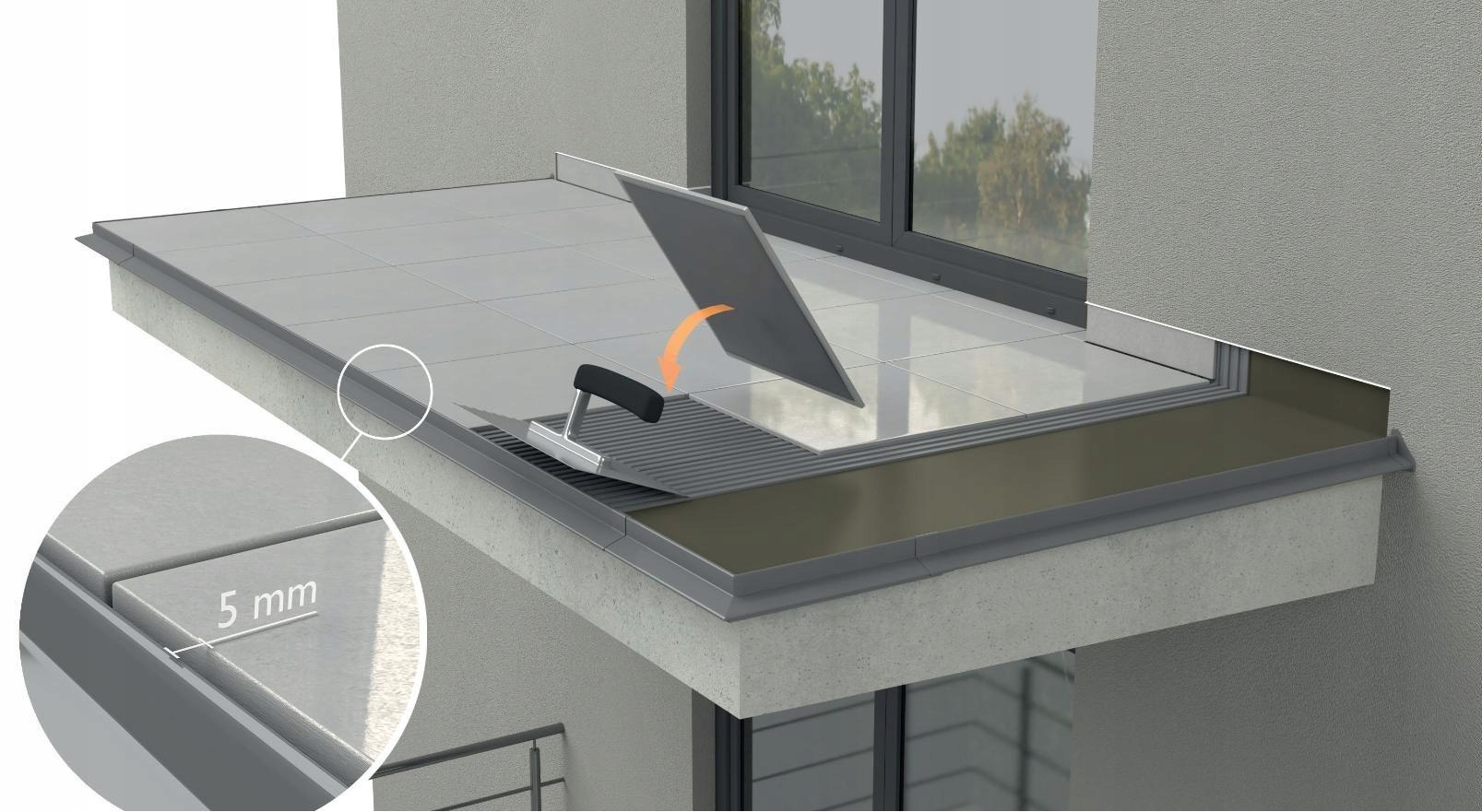 - Предотвращает скопление воды на краях поверхности балкона или террасы.