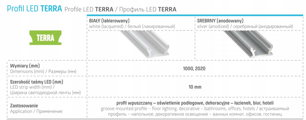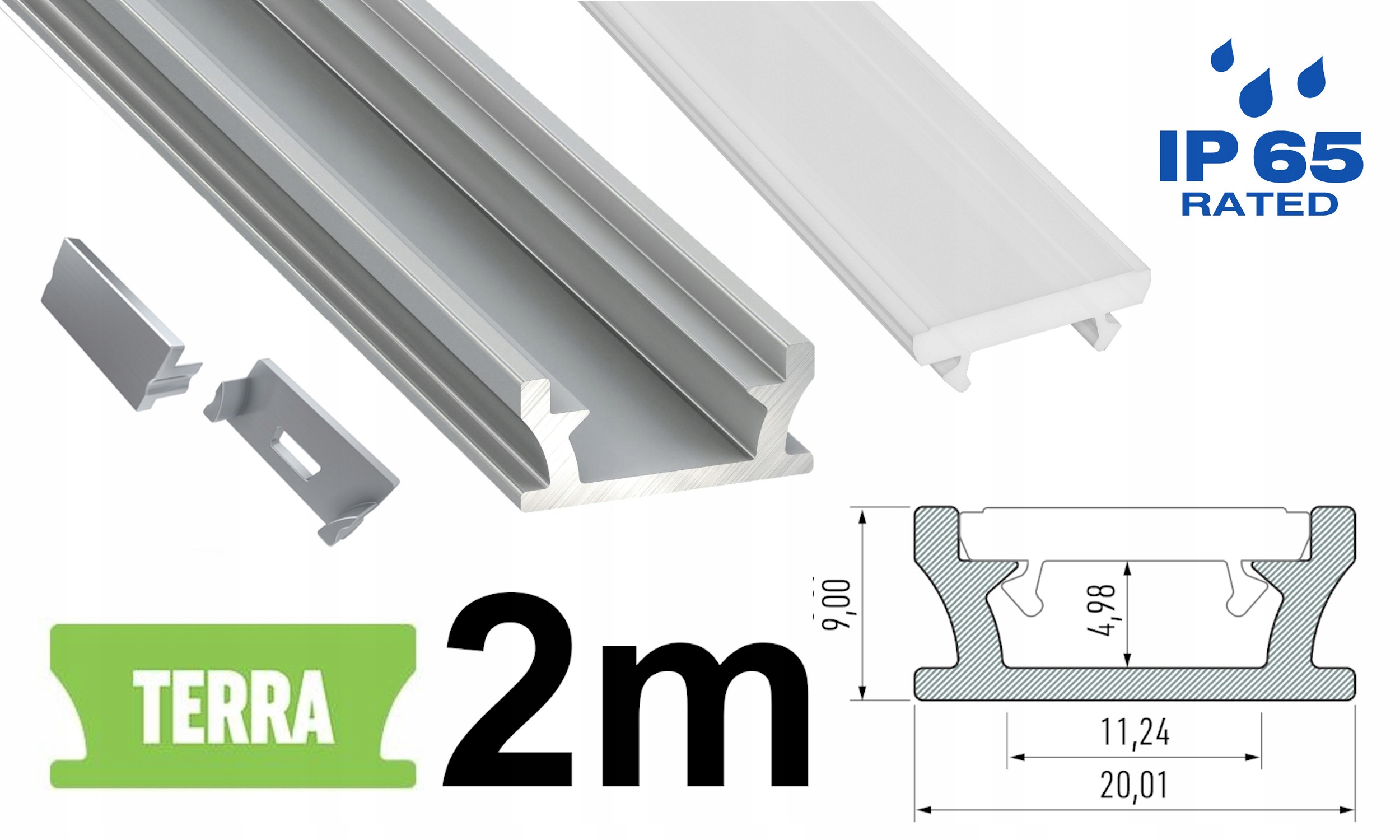 алюминиевый профиль Terra 2M для водонепроницаемого IP65 с абажуром и пробками. Для внутренних и внешних приложений h1> лента из влаги. Его можно использовать в душевых каютах, так как подсветка нижнего или потолочного освещения, в полках, карнизы для ванной комнаты и для выделения зеркала. Этот профиль также подходит для внешнего использования для подъездных путей, заголовков на крыше, внешней лестницы, террасов. Благодаря герметизированию абажура, предотвращая влажность светодиодной полосы. 50% и добавляет отличный эстетический эффект.