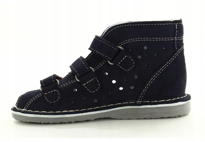 Туфли Даниэлька имеют сертификат «Здоровая стопа». Они изготовлены из темно-синей кожи, застегиваются тремя ремешками на липучке, что позволяет регулировать ширину обуви под ногу. Они имеют профилированную кожаную вставку, высокий жесткий каблук, стабилизирующий голеностопный сустав, и широкий носок, обеспечивающий свободу пальцев.
