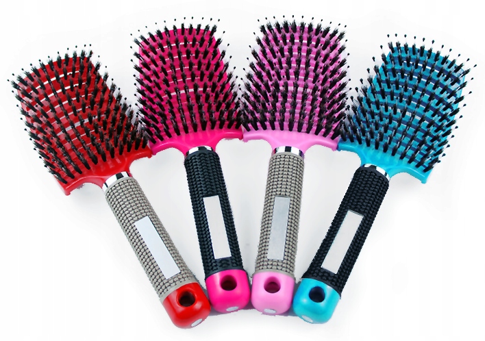 Расчесывающая поверхность щетки подобрана соответствующим образом. широкие и изогнутые, чтобы правильно адаптироваться к анатомической форме головы. Щетка имеет плотно расположенные нейлоновые иглы с шариковыми концами, которые нежно воздействуют на кожу головы и дополнительно массируют ее. Каждая игла встроена в пучок натуральной щетины кабана, который расчесывает волосы неинвазивным, но эффективным способом.