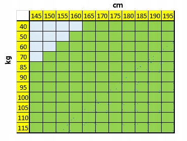 Мы учитывать рост (см) и вес (кг) человека, если точка контакта на таблице отмечена ЗЕЛЕНЫМ цветом, это означает что подушка вам подходит по размеру.