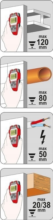 - Глубина обнаружения ферромагнитных металлов: 120 мм