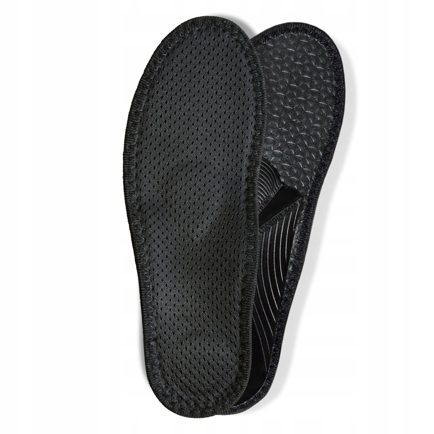 Вставки Super Active Pro изготовлены из дистанционирующей ткани (100% полиэстер), нетканого материала, перфорированной латексной пены, содержащей активированный уголь, и пластикового профиля. Трикотаж-спейсер благодаря своей трехмерной структуре легкий, воздушный и устойчивый к смятию. Эффективно удаляет пот с поверхности стоп.