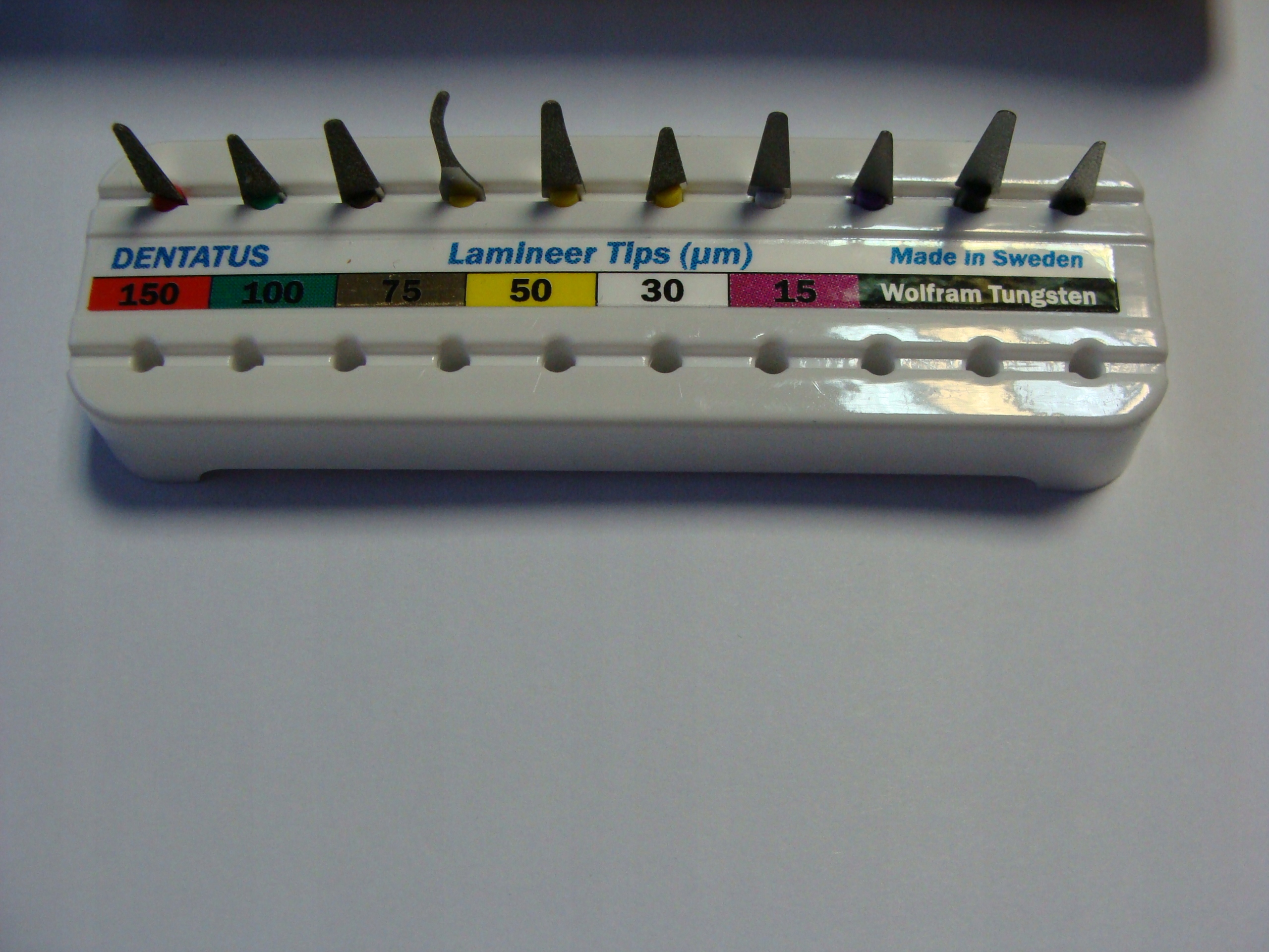 Пилки с одной стороны покрыты алмазным или вольфрамовым покрытием, благодаря чему другая сторона лезвия остается идеально гладкой, что защищает десны от повреждений, в отличие от вращающихся инструментов.