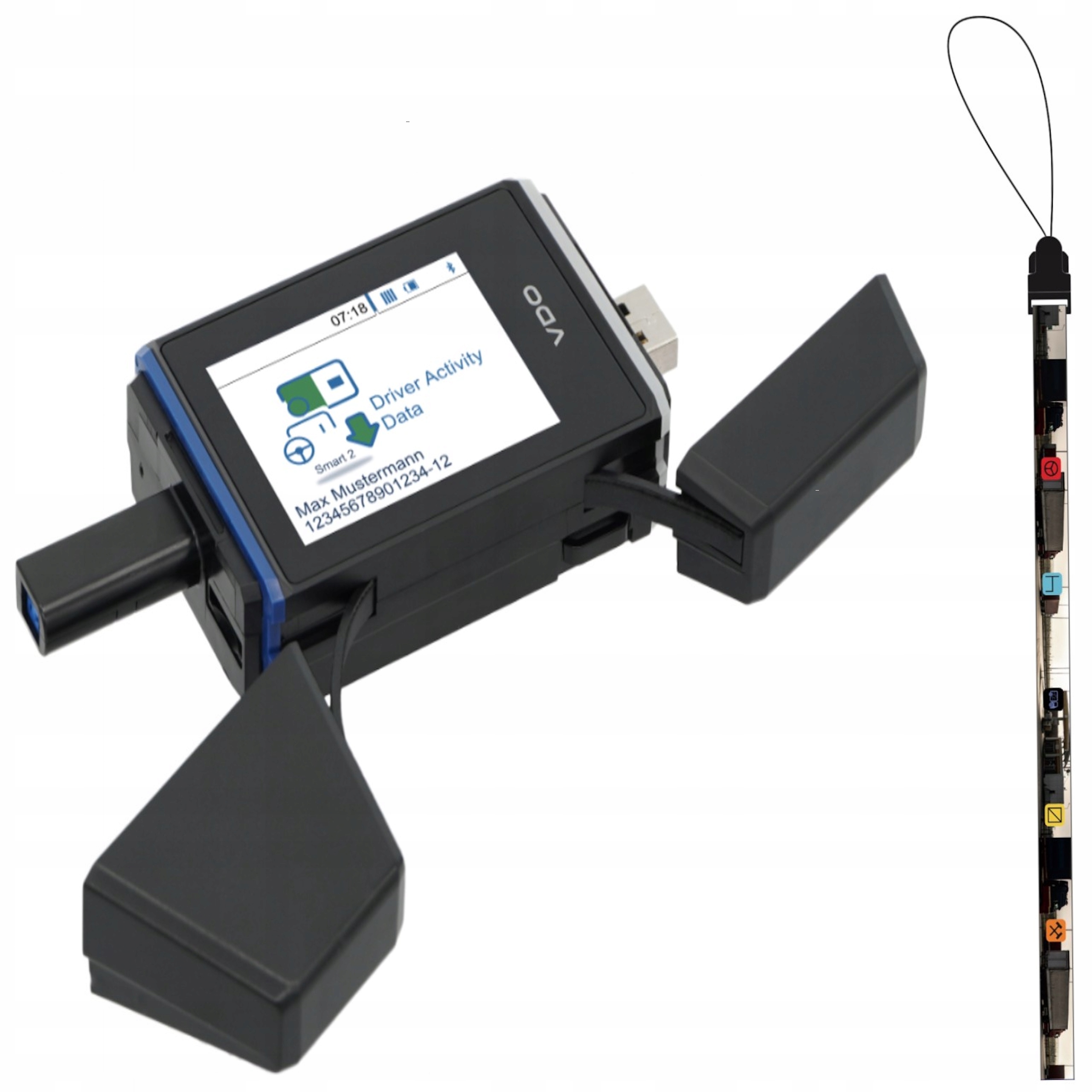 - Естественно совместим с тахографом DTCO 4.1® и всеми одобренными цифровыми и интеллектуальными тахографами (V1/V2) и соответствующими картами.