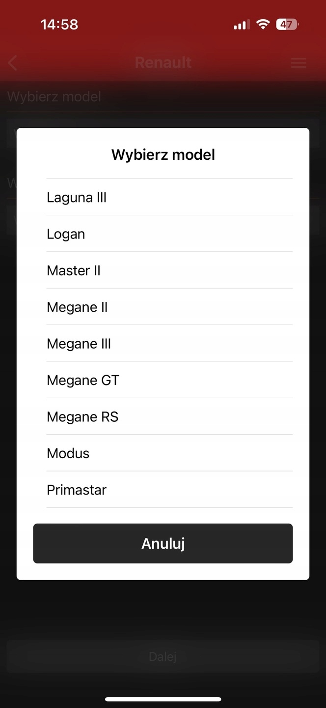 Alaskan (2016–2019), Captur (2013–2017), Clio III (2005–2007), Clio IV (2012–2017), Clio GT III (2009–2012), Clio GT IV (2013–2018) , Clio Mio II (2013-2016), Clio RS III (2006-2011), Clio RS IV (2013-2018), Duster (2010-2017), Espace IV (2002-2010), Espace V (2015-2018) , Fluence I (2009–2012), Fluence II (2013–2016), Fluence GT I (2012–2014), Grand Modus (2008–2013), Grand Scenic II (2004–2009), Grand Scenic III (2009–2016). ), Grand Scenic IV (2016-2017), Каджар (2015-2017), Kangoo II (2008-2013), Koleos I (2008-2015), Koleos II (2017), Laguna II (2005-2007), Laguna III (2007-2016), Логан (2016-2017), Мастер II (2003-2010), Меган II (2002-2008), Меган III (2008-2016), Меган GT (2012-2017), Меган RS (2004- 2015), Modus (2005–2012), Primastar (2006–2014), Sandero (2008–2017), Sandero Stepway (2016–2017), Scenic II (2003–2009), Scenic III (2009–2016), Scenic IV (2016-2017), Scenic X-Mod III (2013-2015), Talisman (2015-2017), Trafic II (2001-2012), Trafic III (2014-2018), Vel Satis II (2005-2009).< /п>