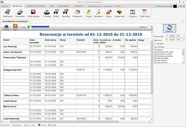 mОтель является результатом почти десятилетней нашей работы в сотрудничестве с людьми, работающими в гостиничном бизнесе. На данный момент мы можем предложить Вам очень стабильную, многофункциональную систему приема. Он может обслуживать объекты, сдающие в аренду комнаты, квартиры, коттеджи и места – т.е. общежития. mHotel — это программа, которая постоянно развивается, и в течение года мы публикуем от нескольких до дюжины обновлений, доступных нашим клиентам. Обновления являются результатом планового развития программы и предложений клиентов.