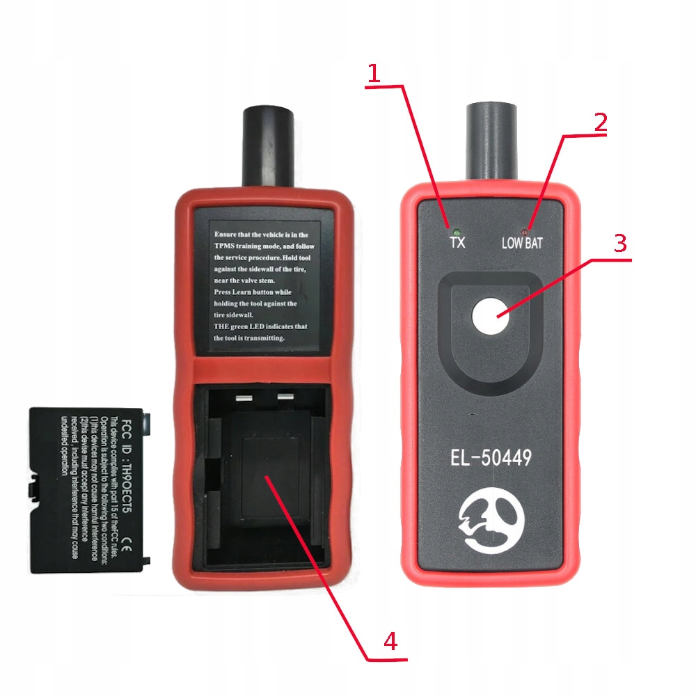 В автомобилях FORD после замены датчиков давления TPMS новые датчики в автомобиле необходимо перепрограммировать. Это достигается, в том числе, с помощью Активатора/возбудителя EL-50449 - когда вы прикладываете его к шине на уровне воздушного клапана и нажимаете кнопку на устройстве, подается сигнал на датчик давления TPMS, чтобы он отправлял информацию о текущем давлении, температуре и вашем b>идентификаторе. Этот номер уникален для каждого из датчиков, установленных в колесах, и благодаря ему автомобиль может привязать данный датчик к положению соответствующего колеса.