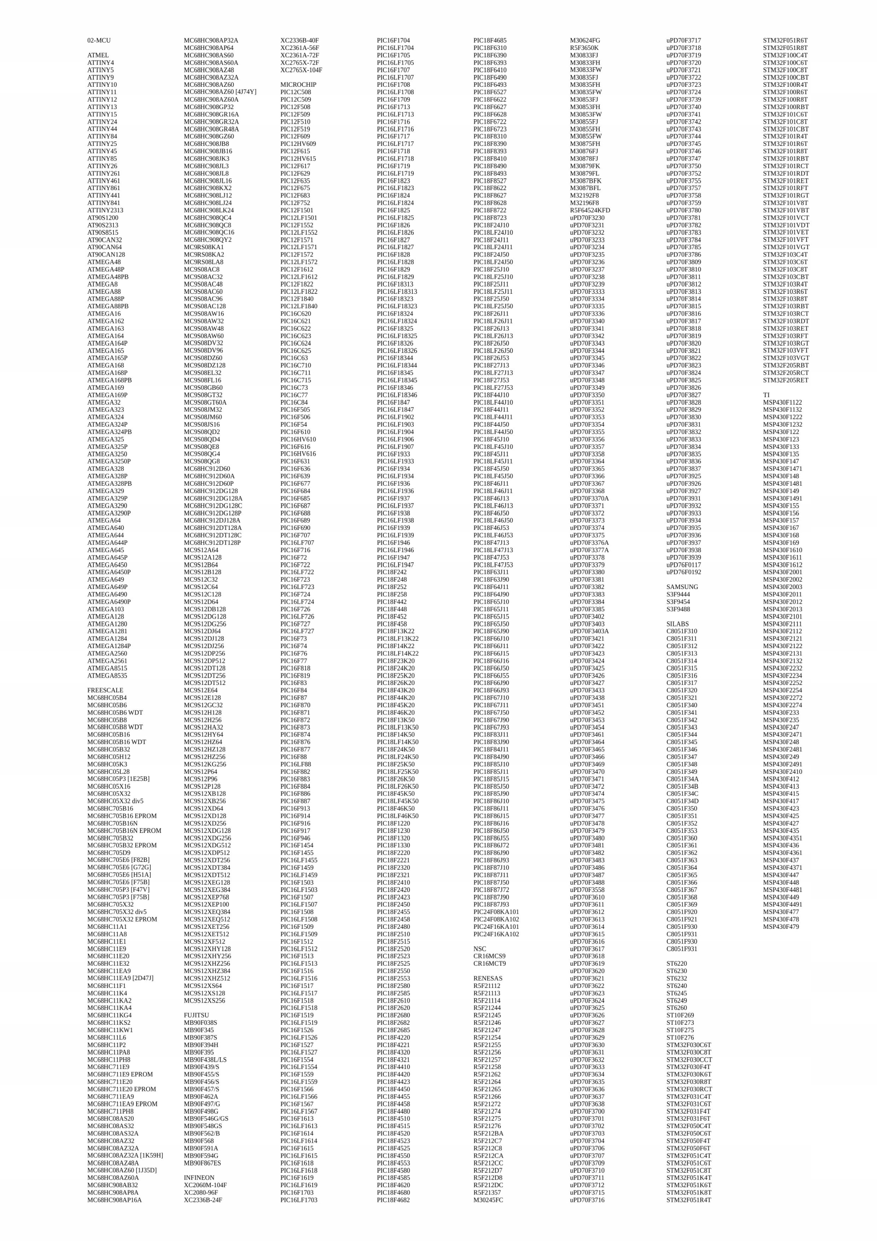 Поддержка более 3000 типов (чипов, компонентов, устройств), включая чтение EEPROM и MCU, поддержка ключей, в программу включены схемы подключения и советы