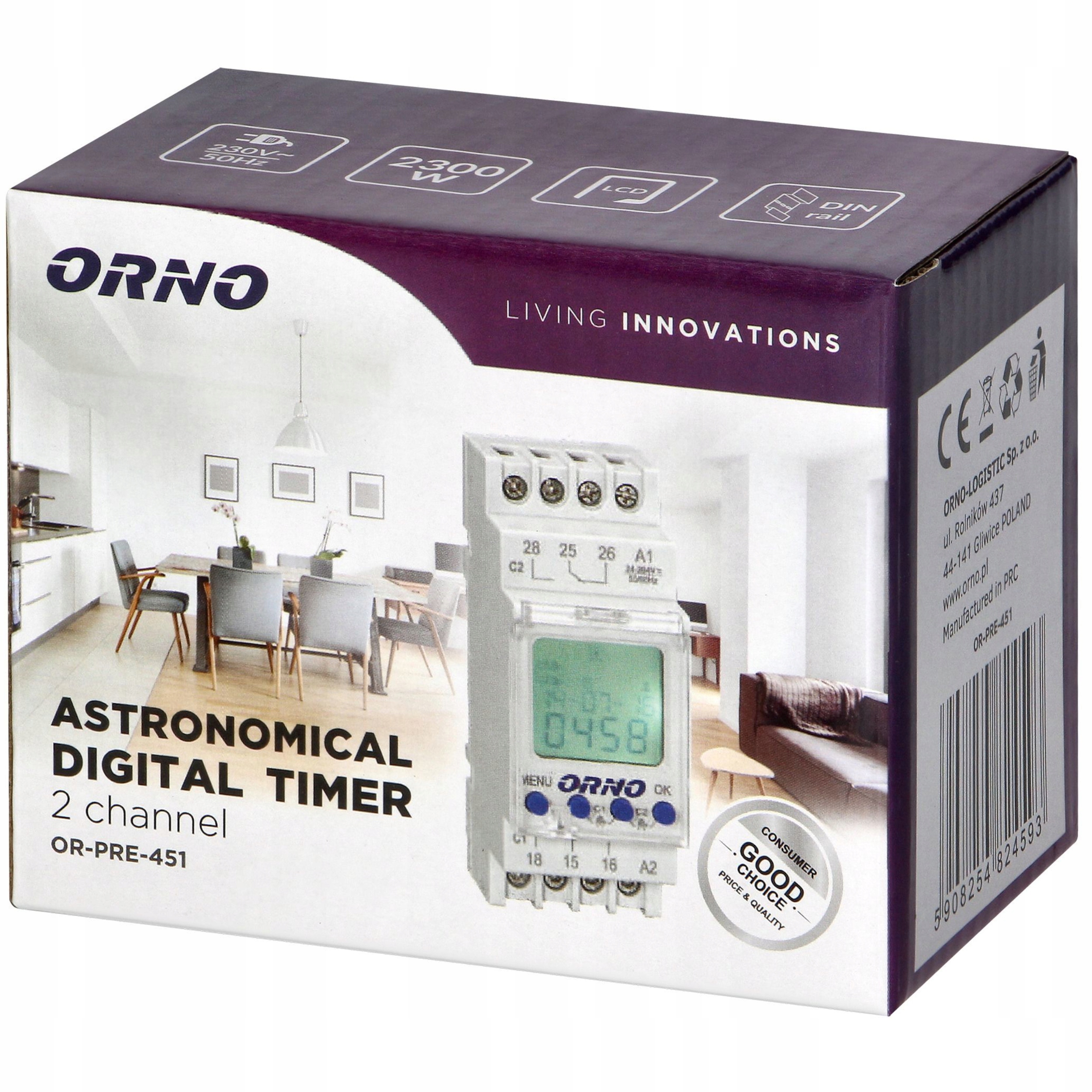 - Первоначально упакованный таймер ORNO OR-PRE-451 на DIN-рейку.
