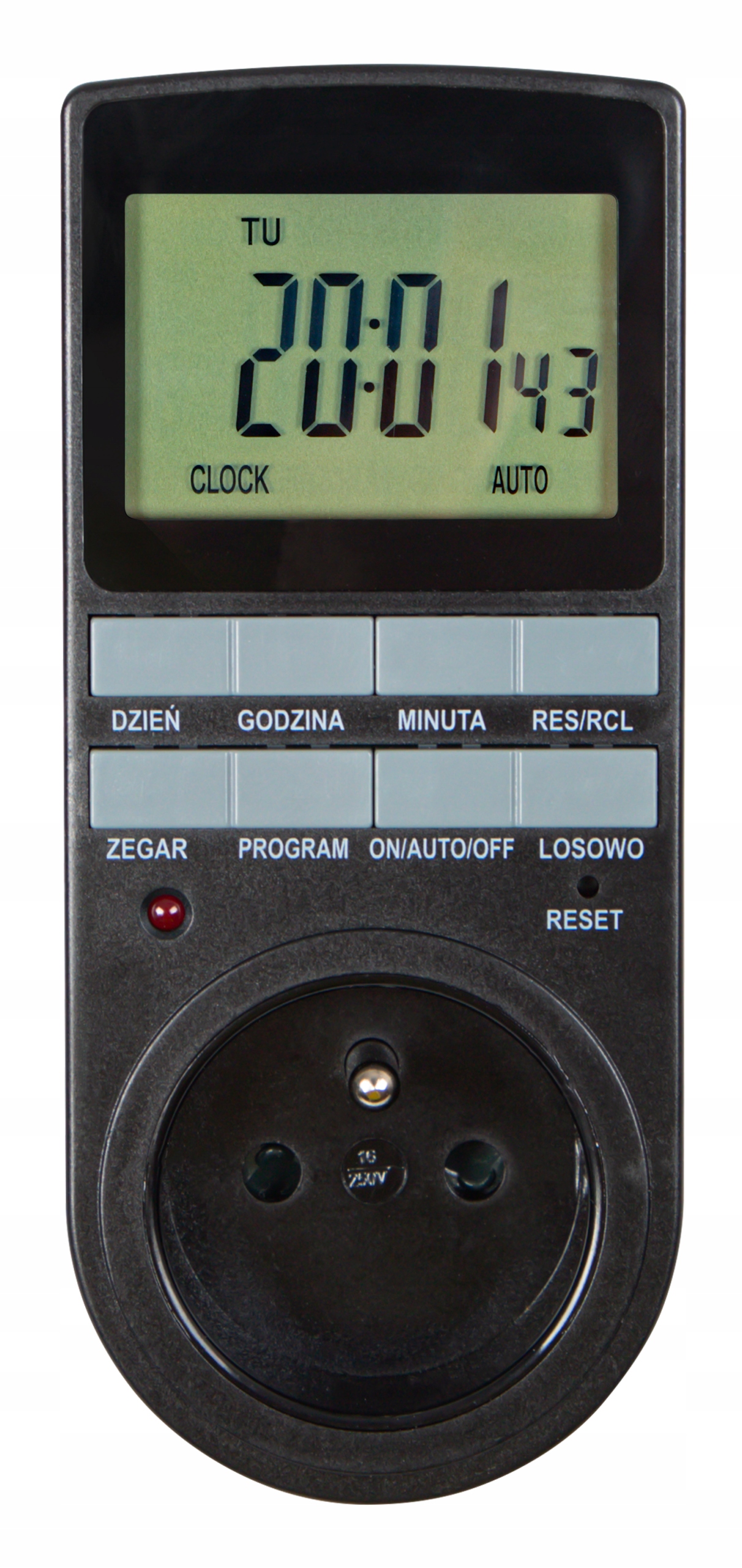 Операция устройства очень проста - просто подключите программиста к электрическому розетке, , а затем заглушку устройства, которое мы выбираем к розетку таймера. Используя кнопки на передней панели, мы установили подходящее время , в котором розетка должна быть включена - также возможно установить конкретные дни